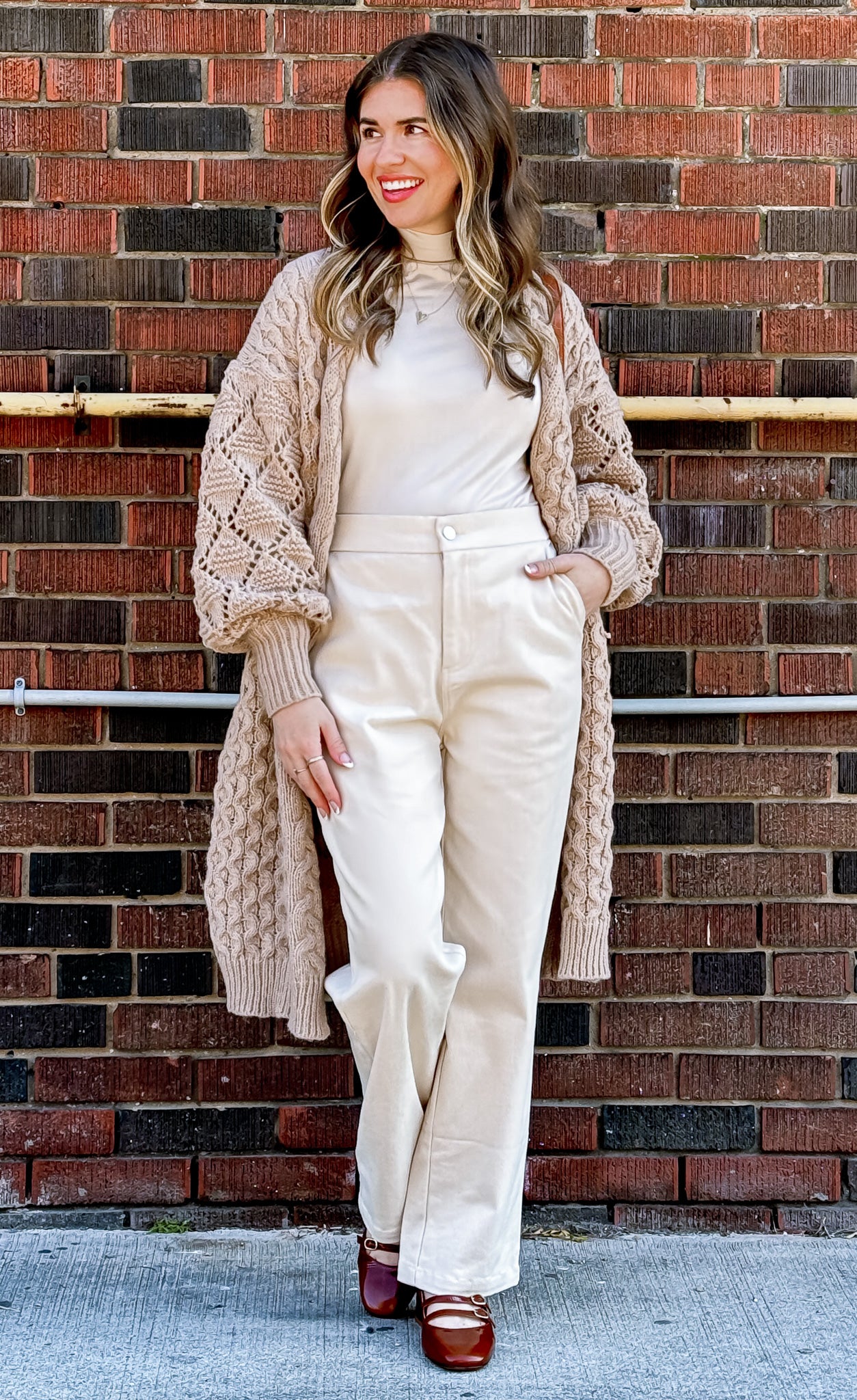 The Irie Sweater is a cozy, long open front sweater featuring ribbed hem and cuffs. Its relaxed design makes it perfect for layering, adding warmth and style to any outfit.