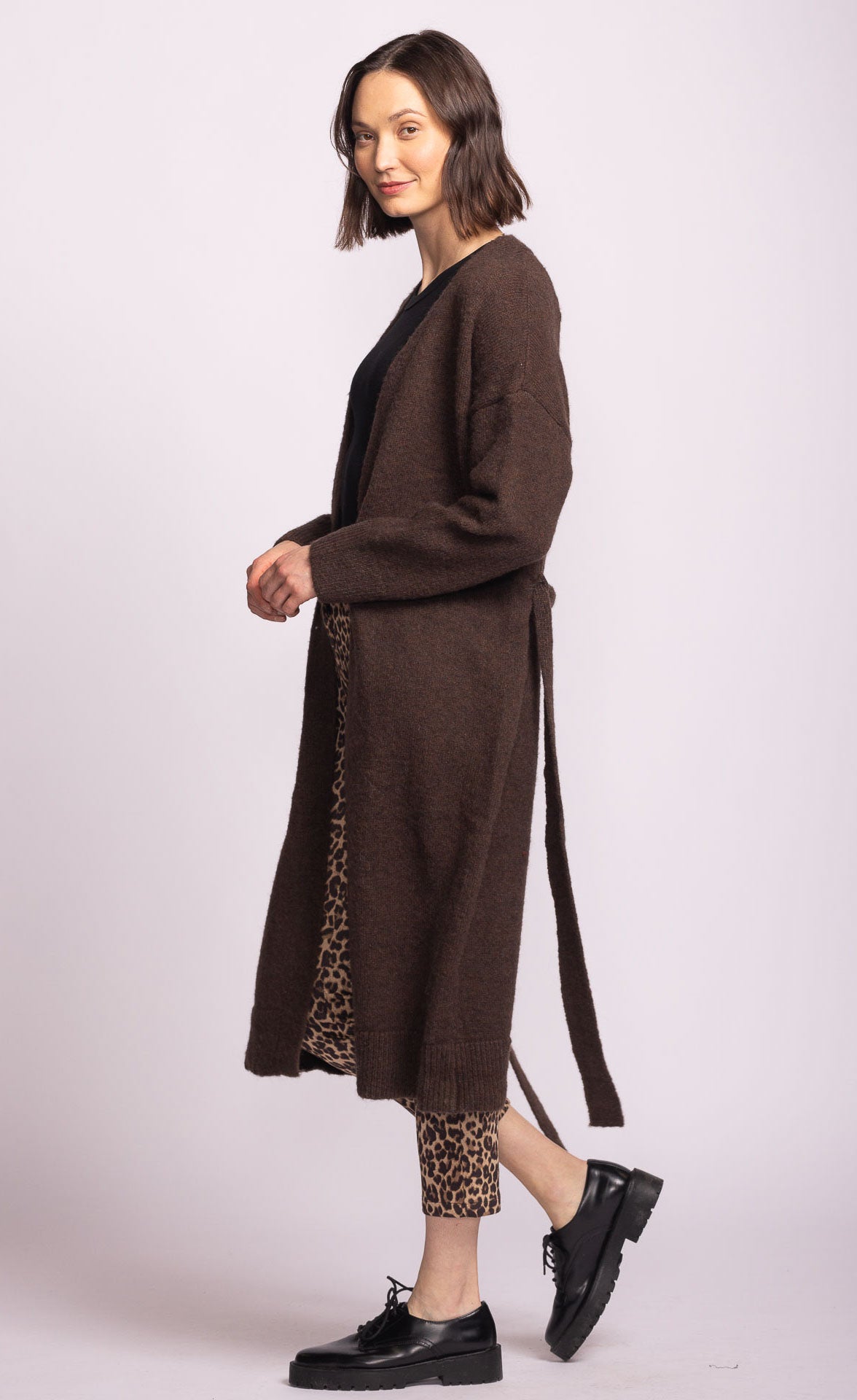 The Kiki Sweater is a long knit cardigan crafted from super-soft yarn and finished with a self-tie belt for a flattering touch. Layer it over a top and pants or drape it over a dress for an effortlessly cozy-chic outfit.