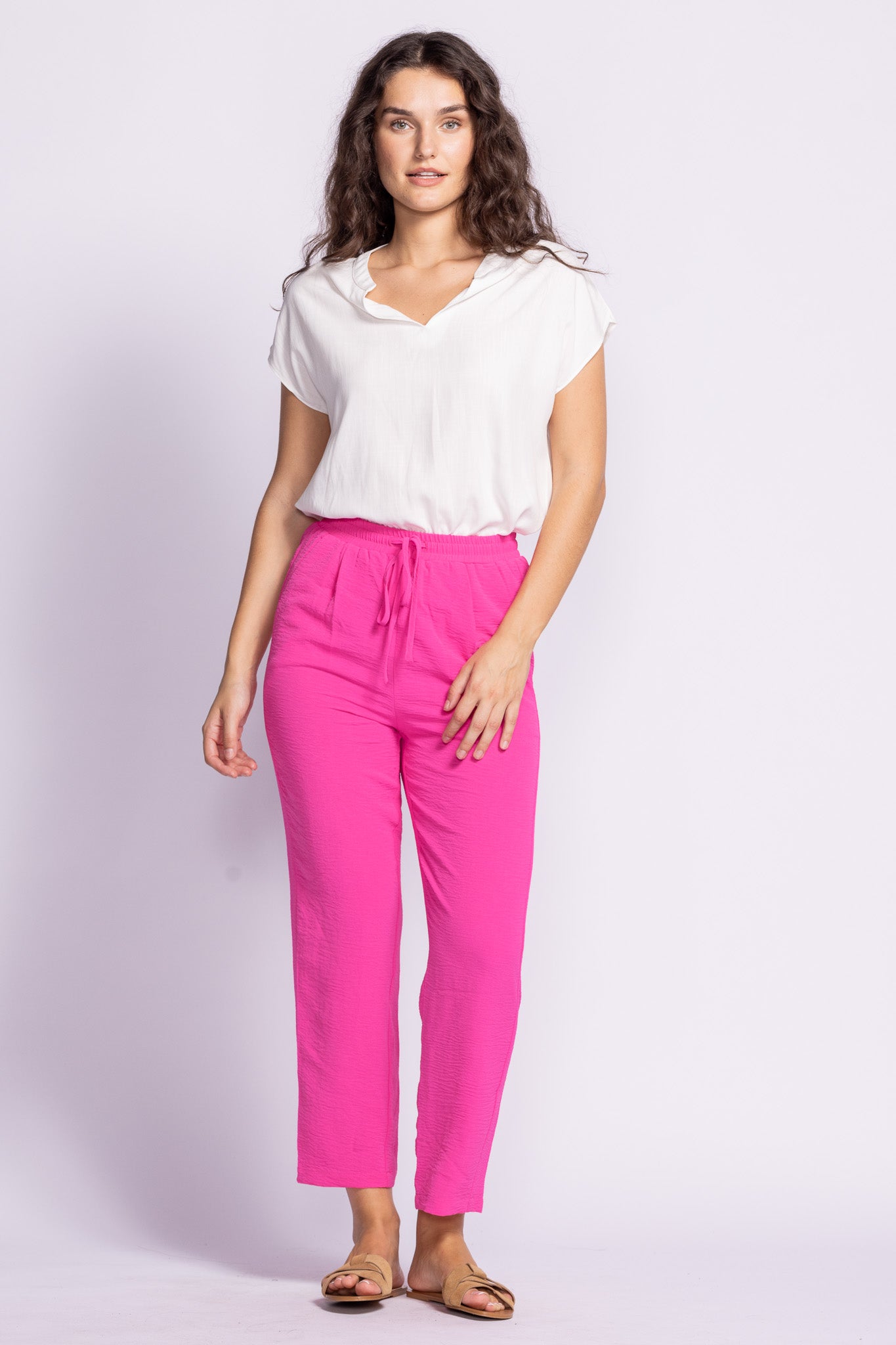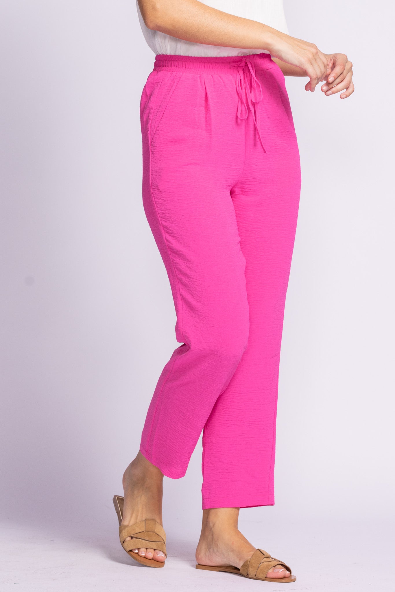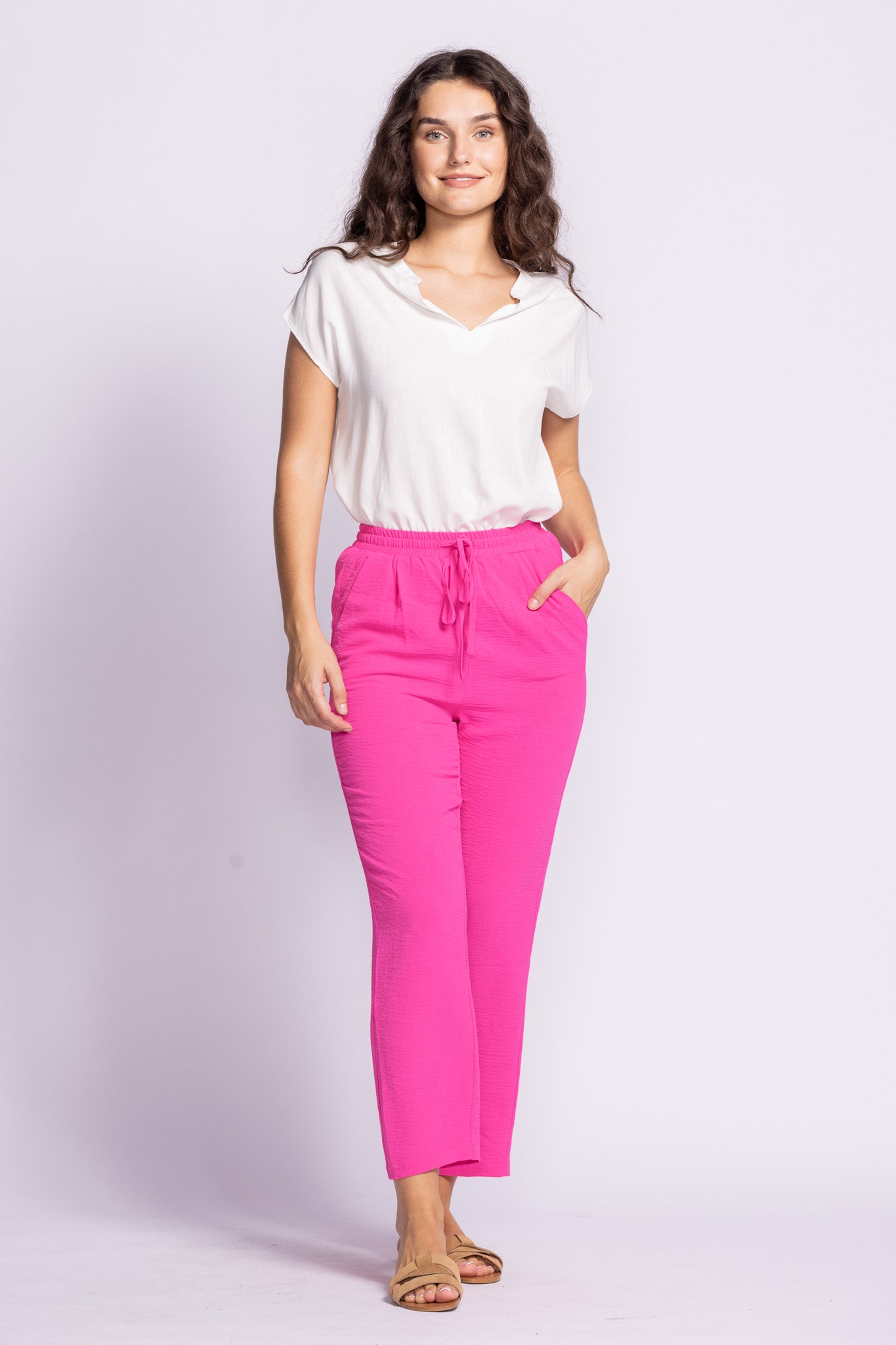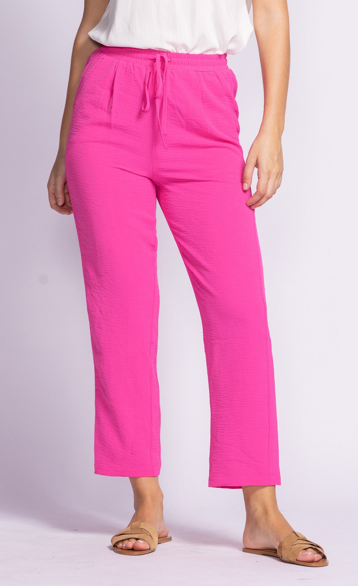 The Crawford Pants feature a relaxed fit with a drawstring waist and handy side pockets—lightweight, breezy, and perfect for warm days!