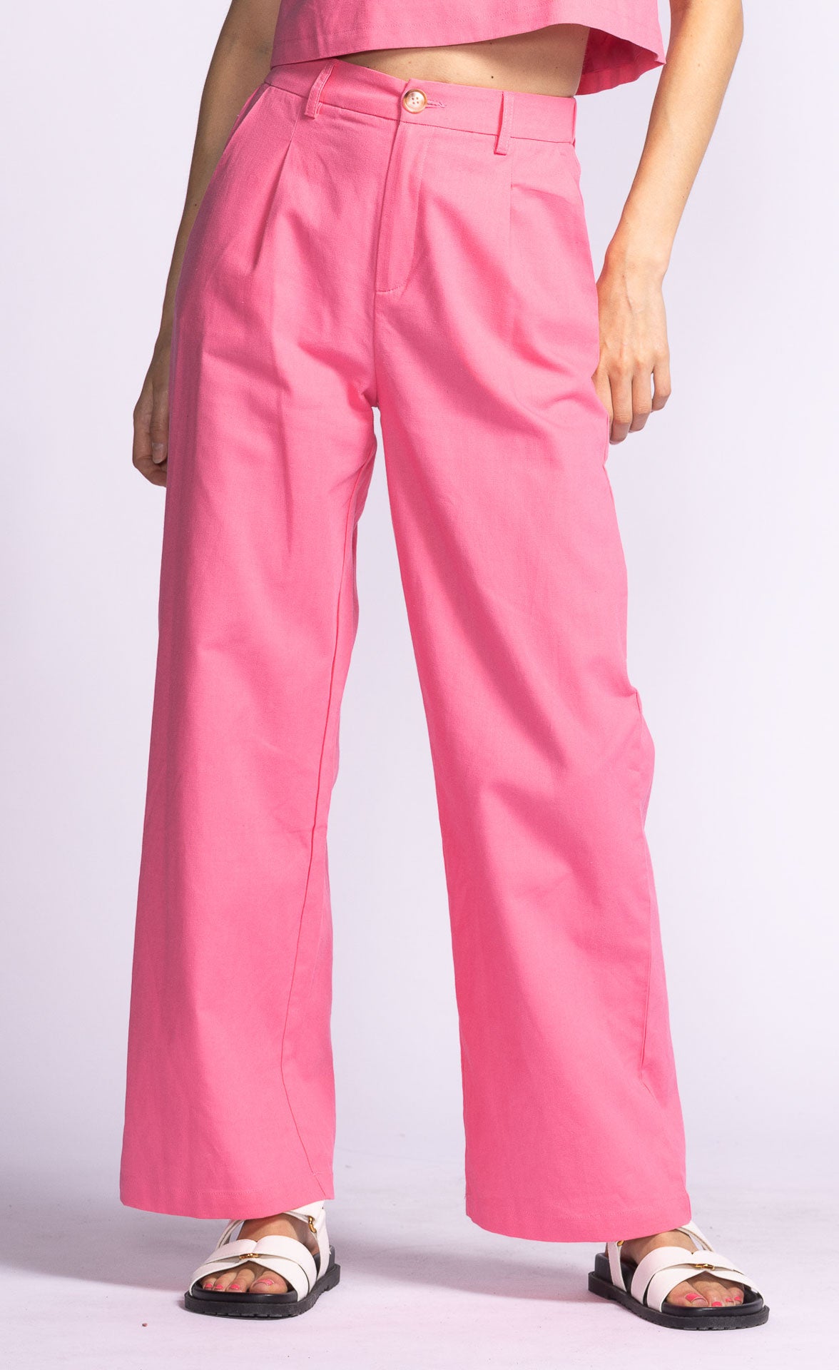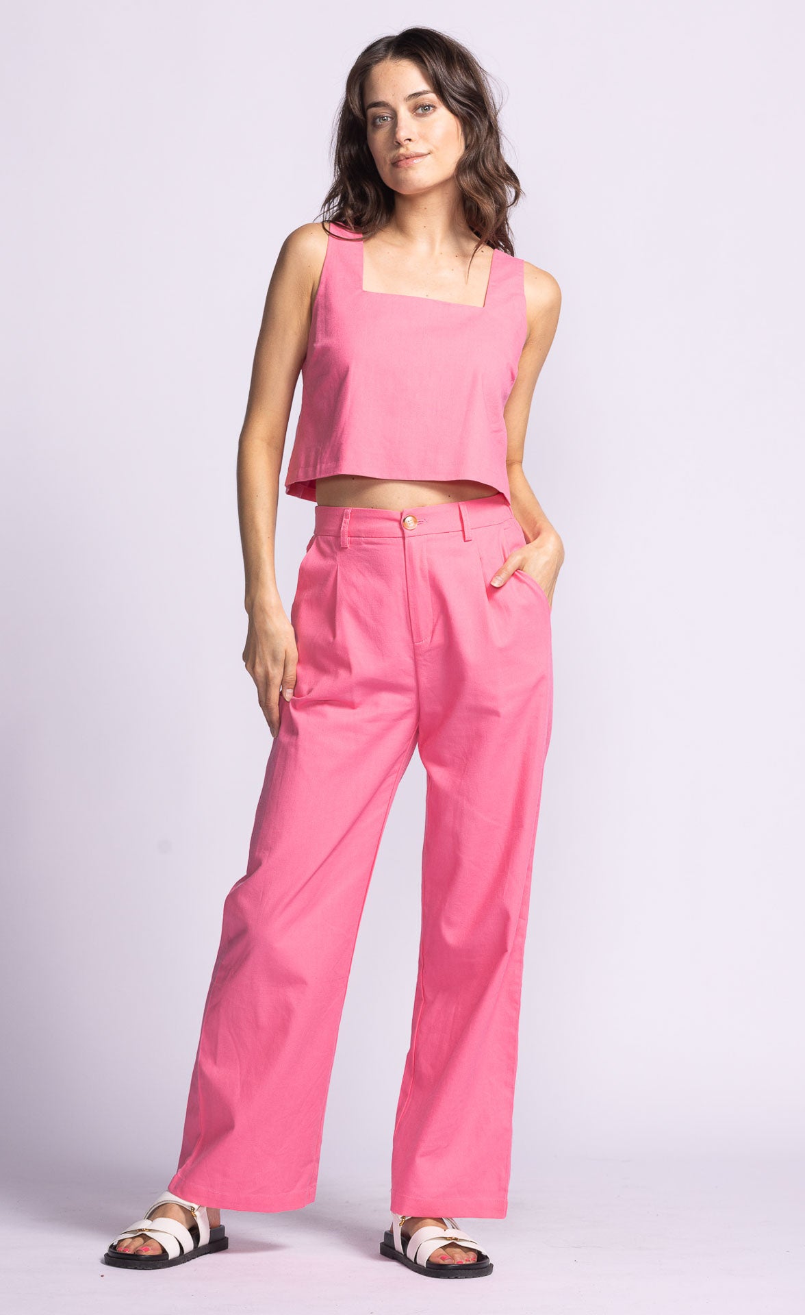 The Delaney Pants feature a button and zip front, side pockets, and a relaxed fit—perfectly paired with the Eliza Top for a chic, coordinated look!