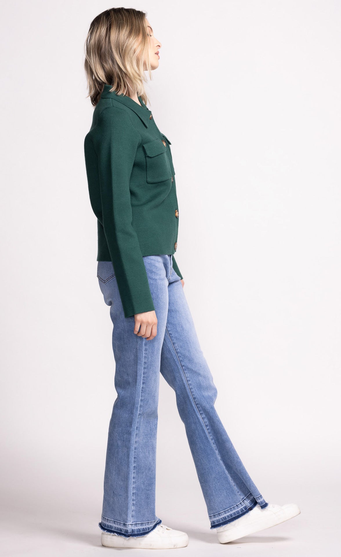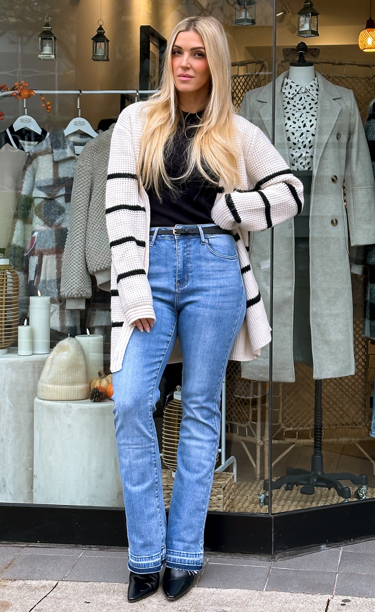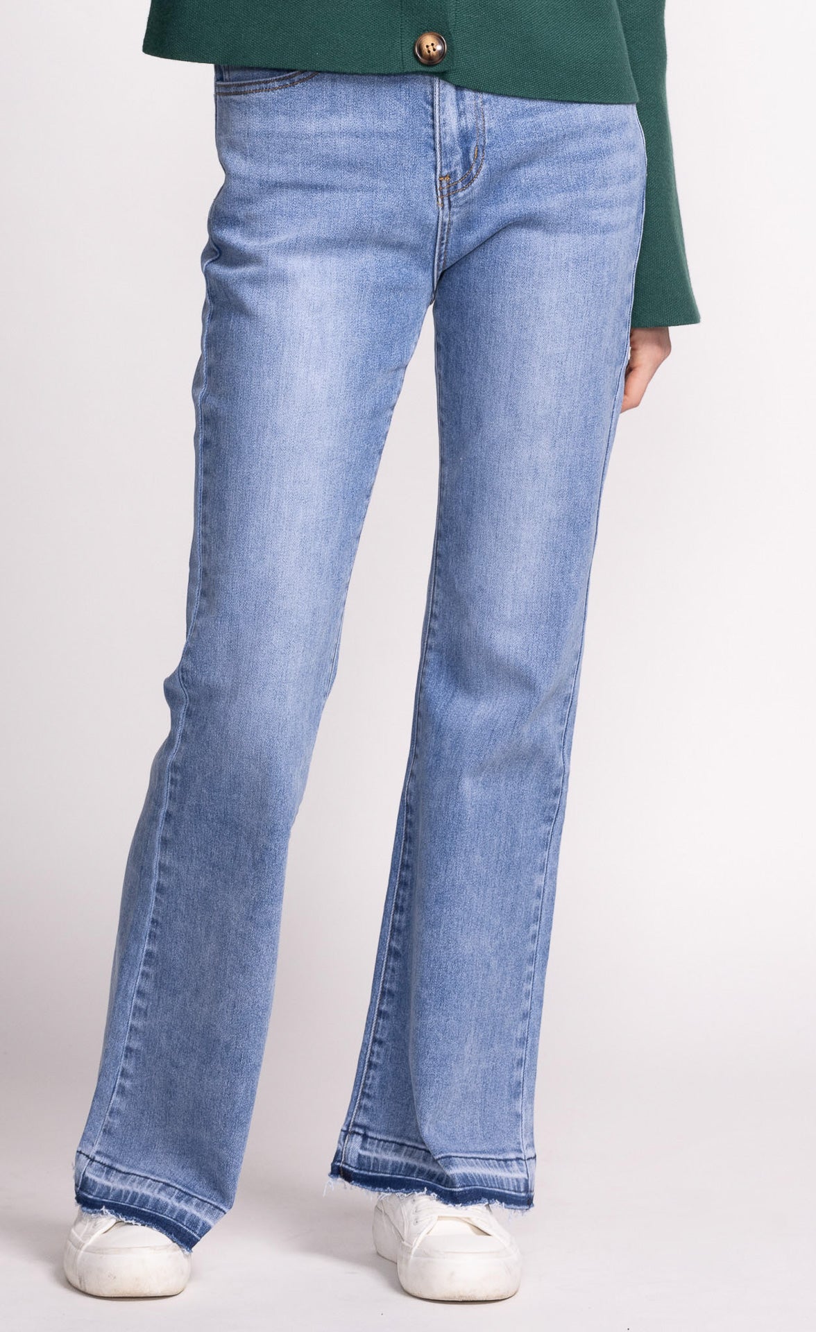 The Sorel Denim offers a flattering mid-waist fit with a classic bootcut leg and a subtle frayed hem for a touch of edge. Style it with a relaxed shirt and heeled boots for a laid-back, yet elevated vibe.