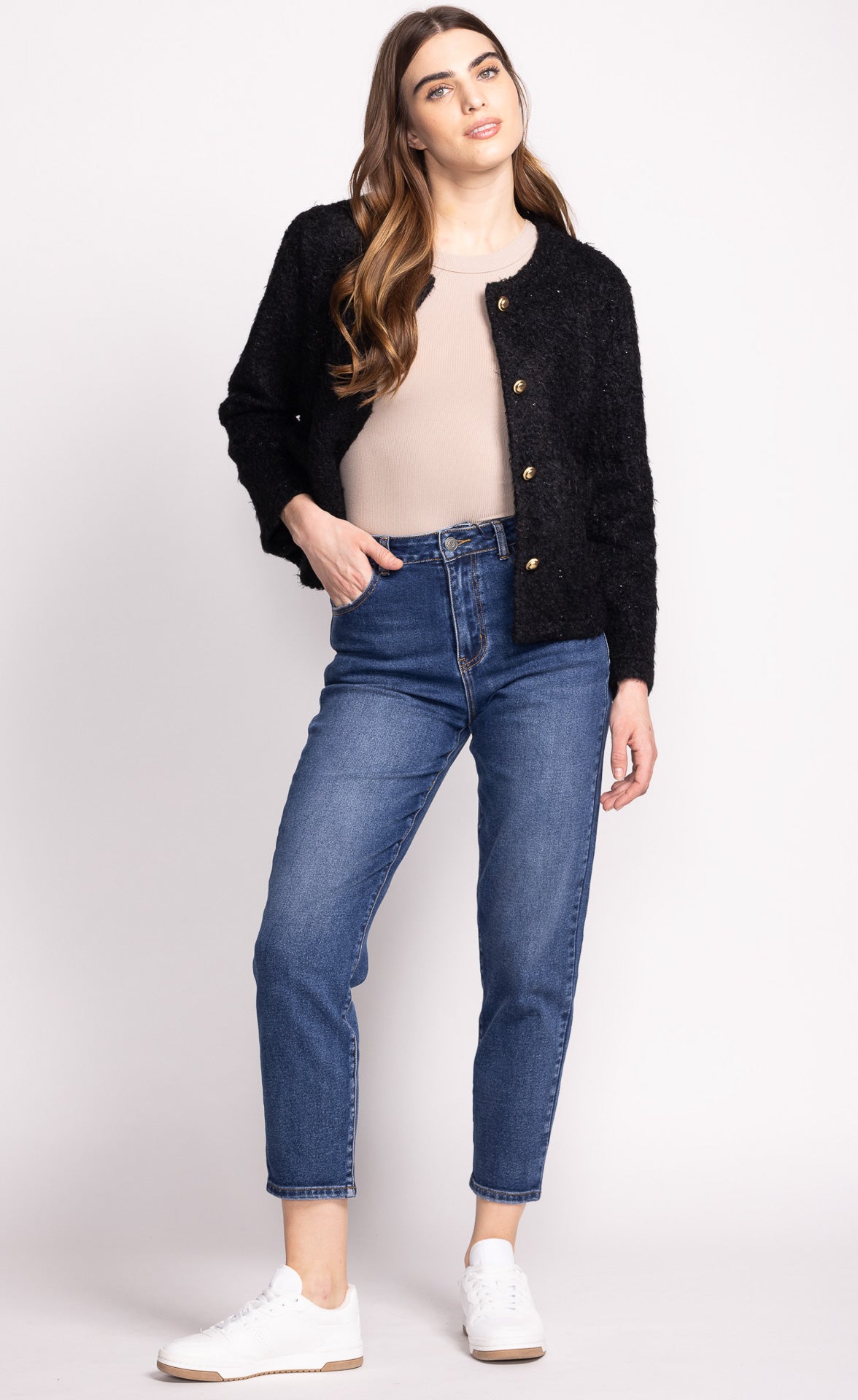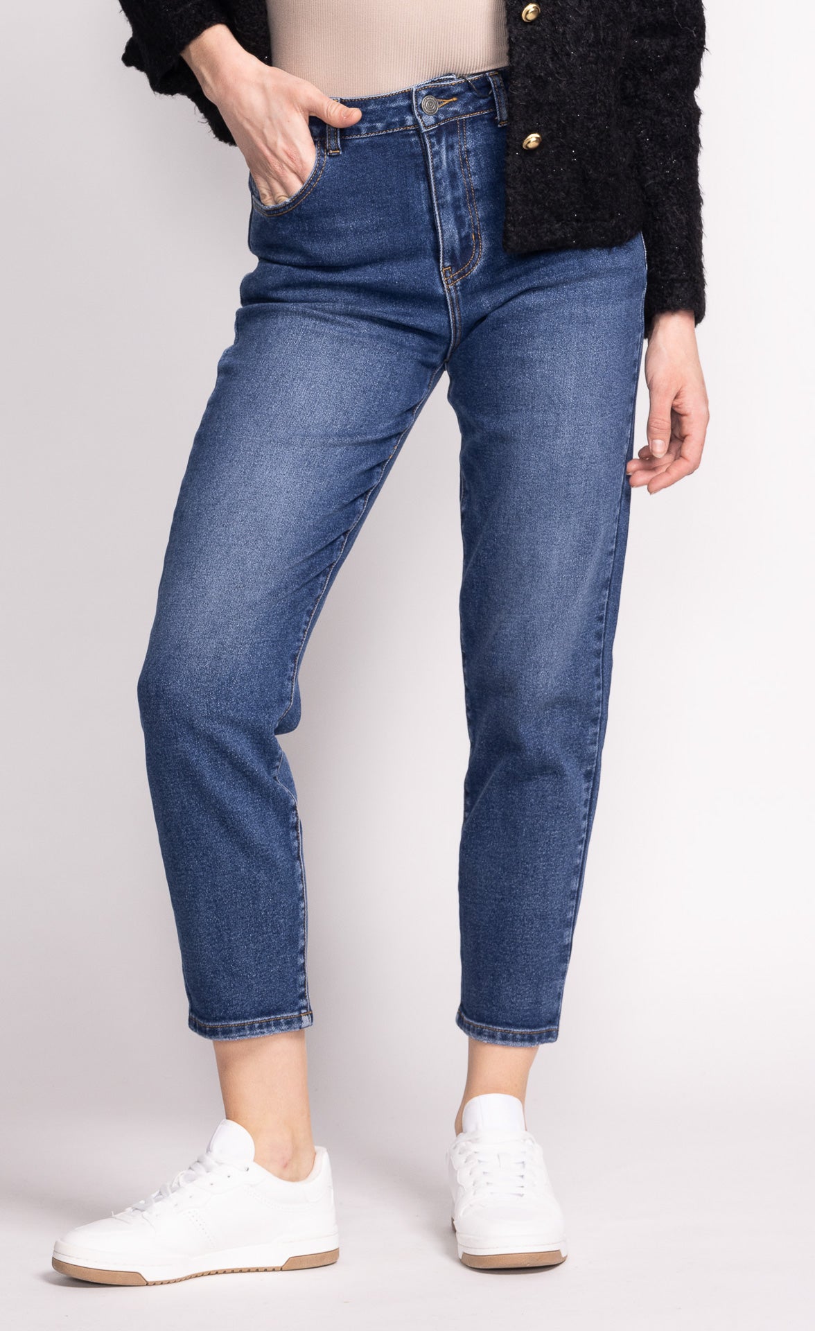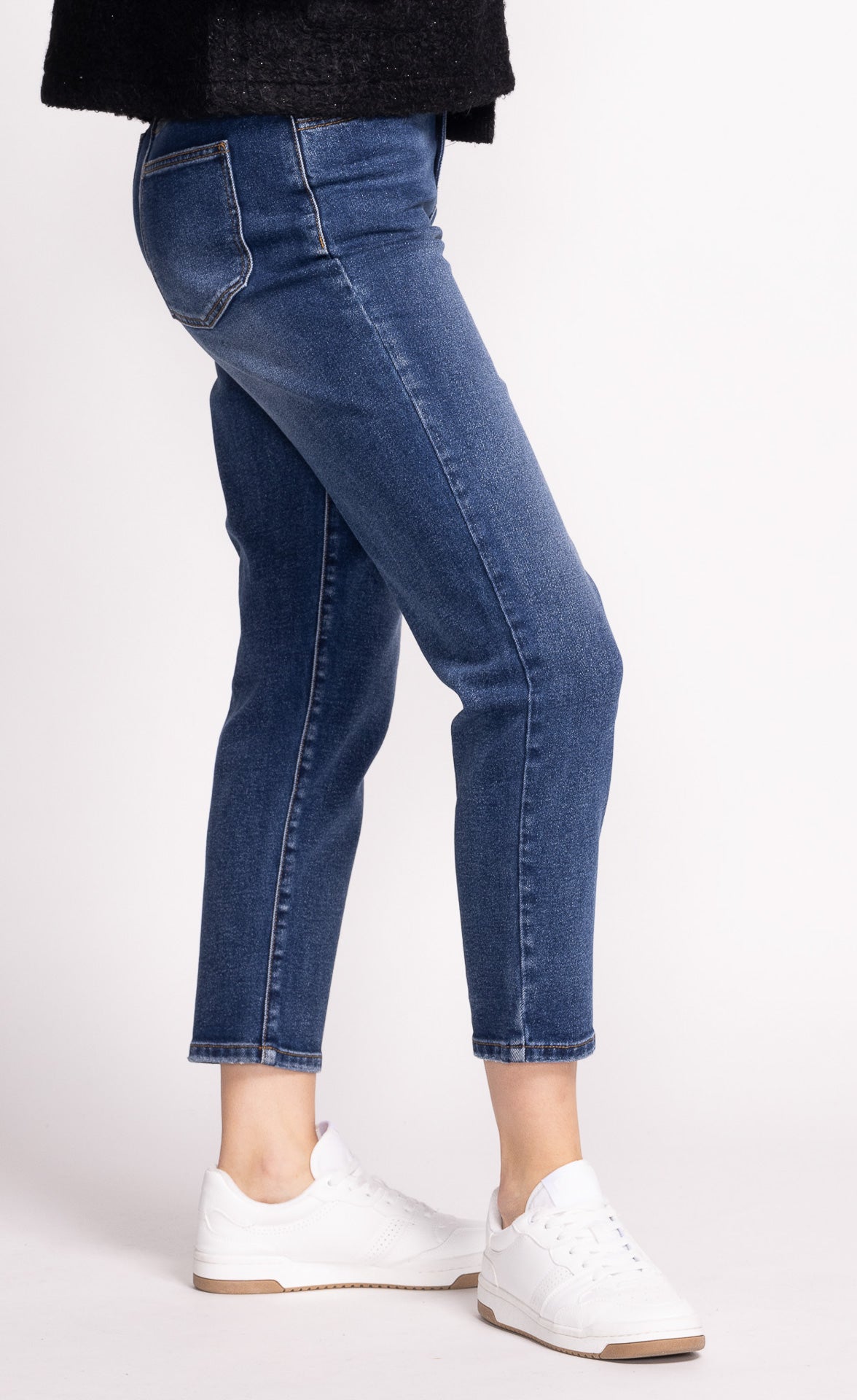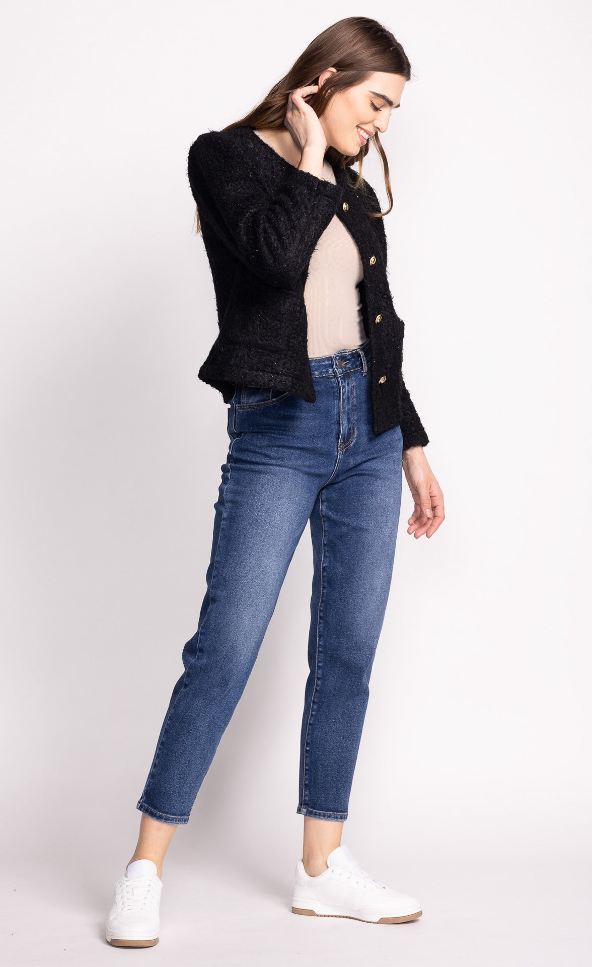 The Sutton Denim features a timeless straight-leg fit, perfect for effortless style. Pair it with a tucked-in blouse and loafers for a chic, casual look.