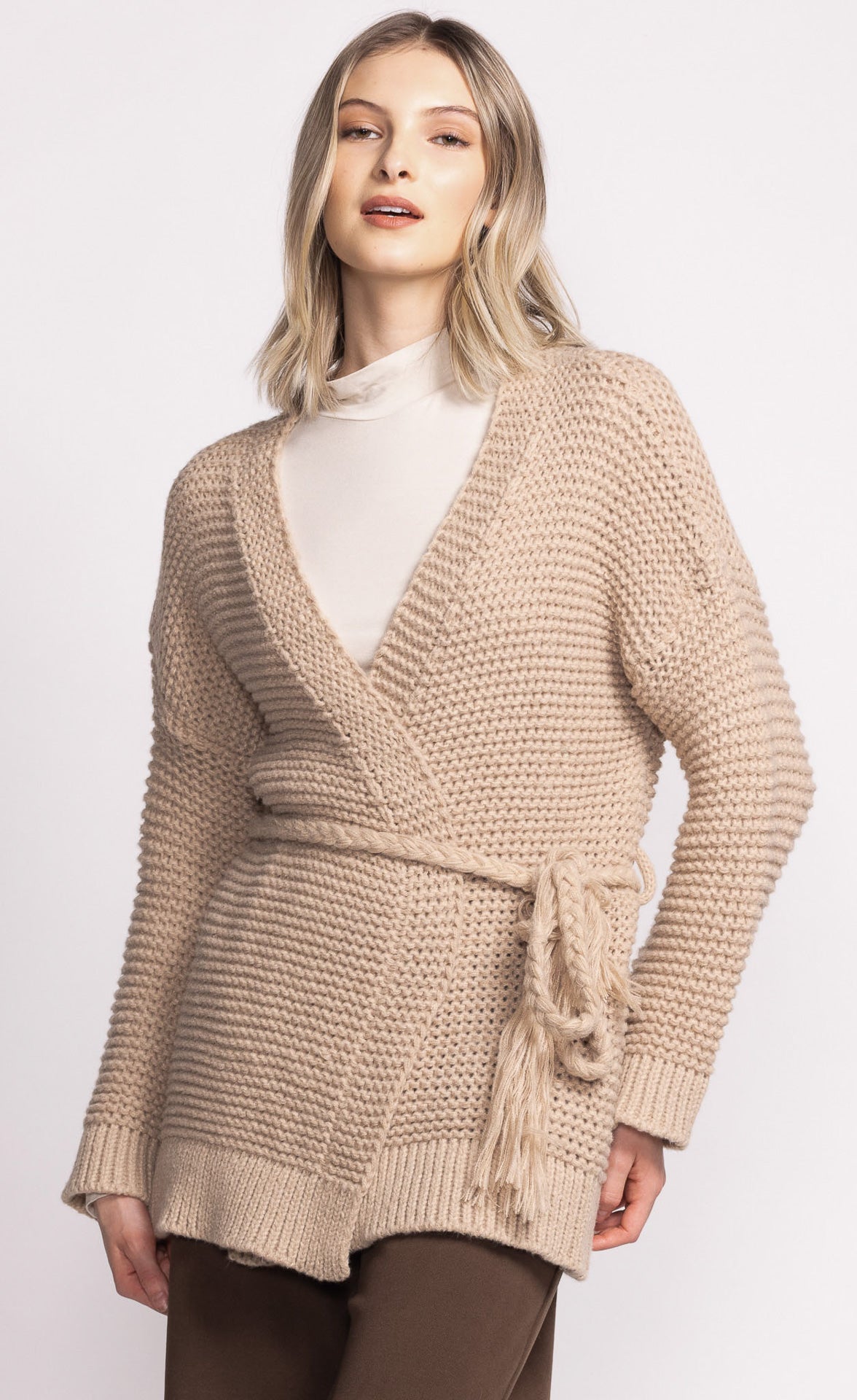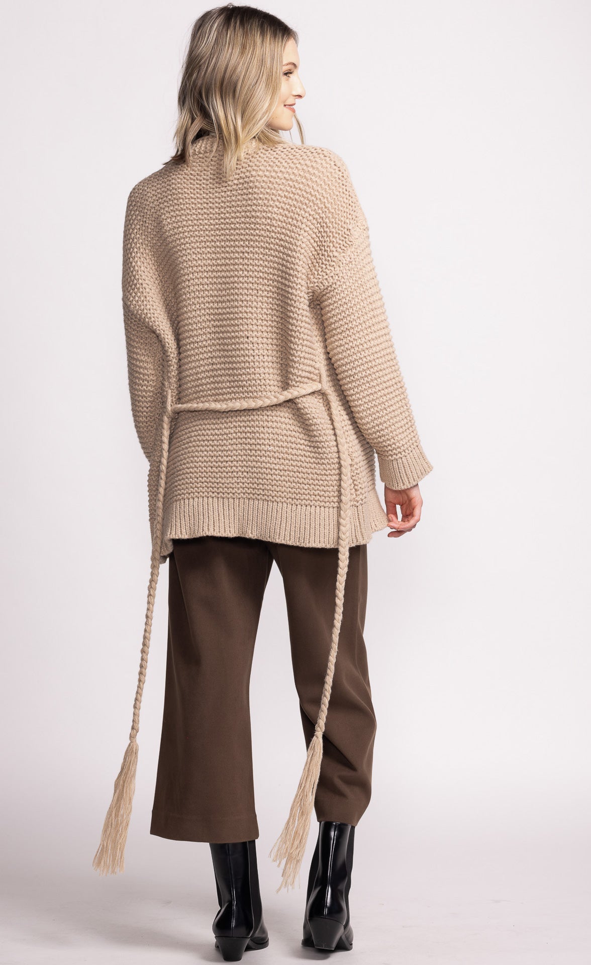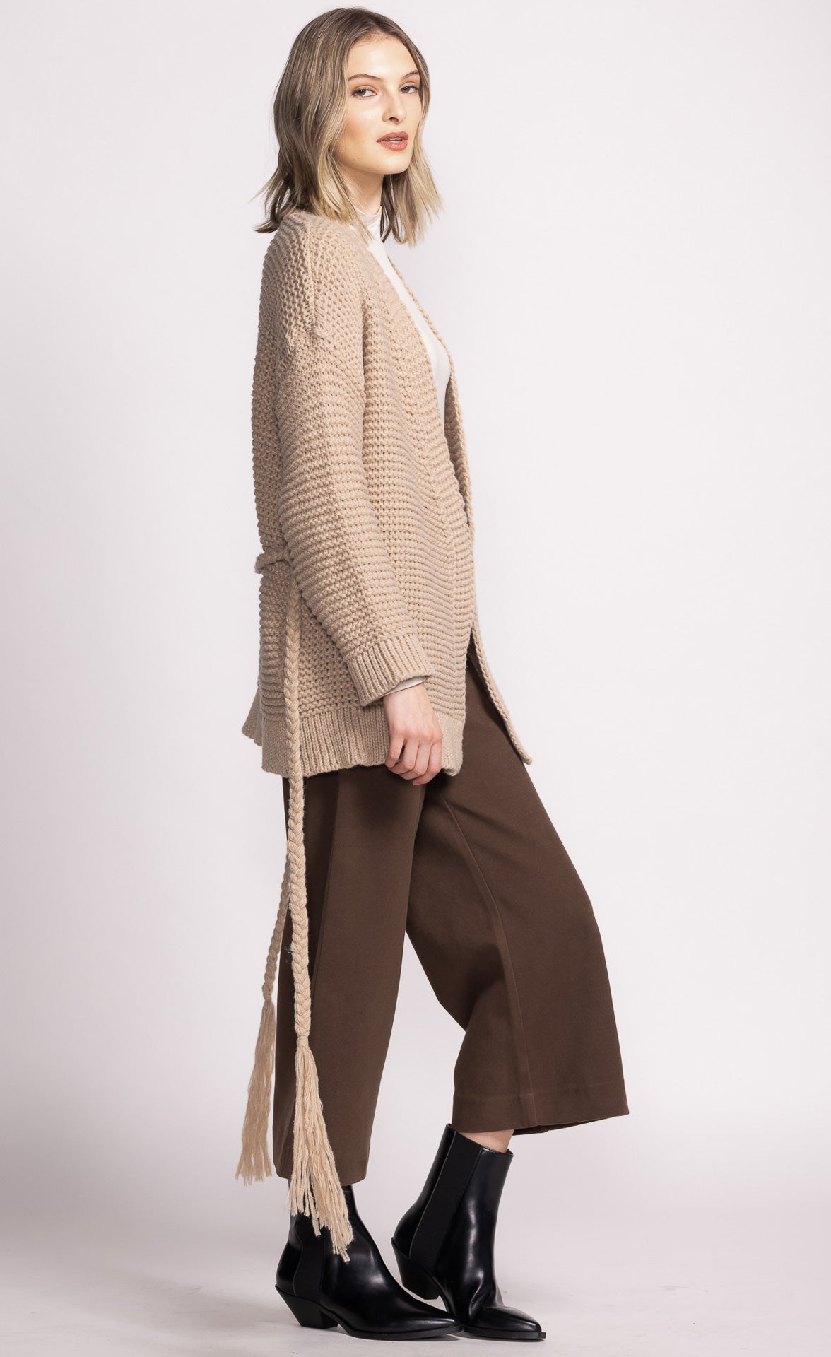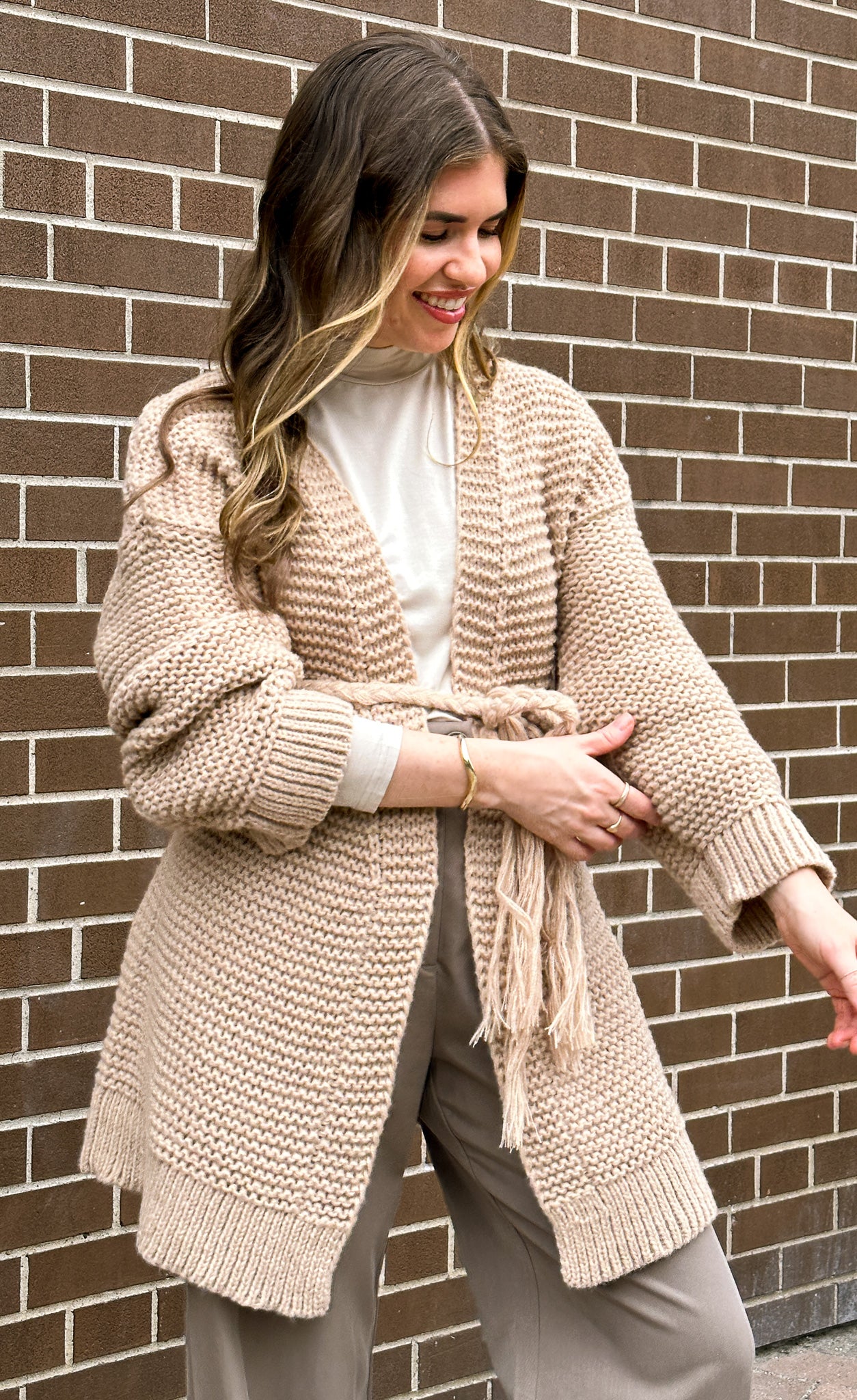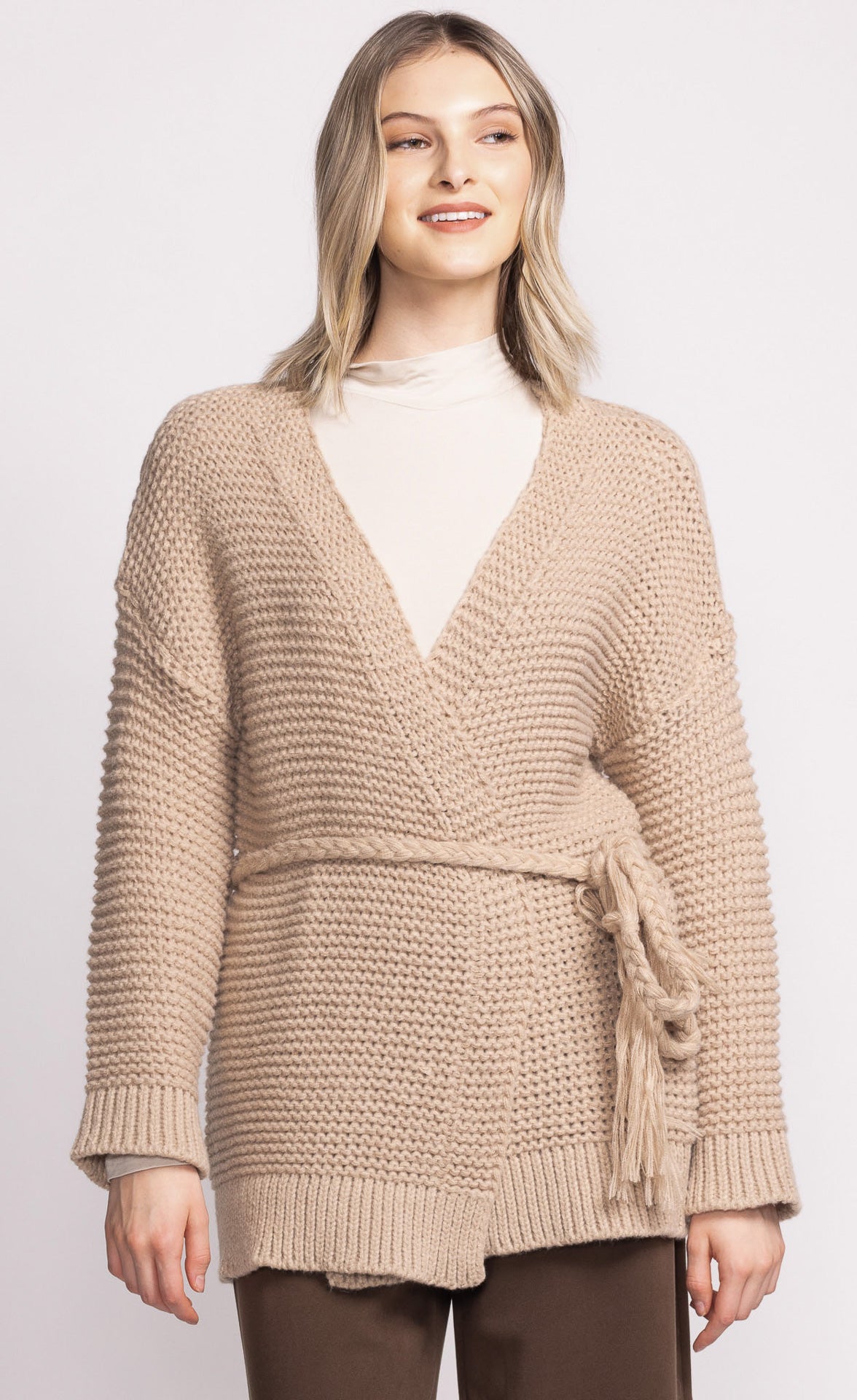 The Wren Sweater is perfect for layering, featuring a cozy design and a braided belt front tie closure for added flair. It’s both stylish and snug for any occasion.