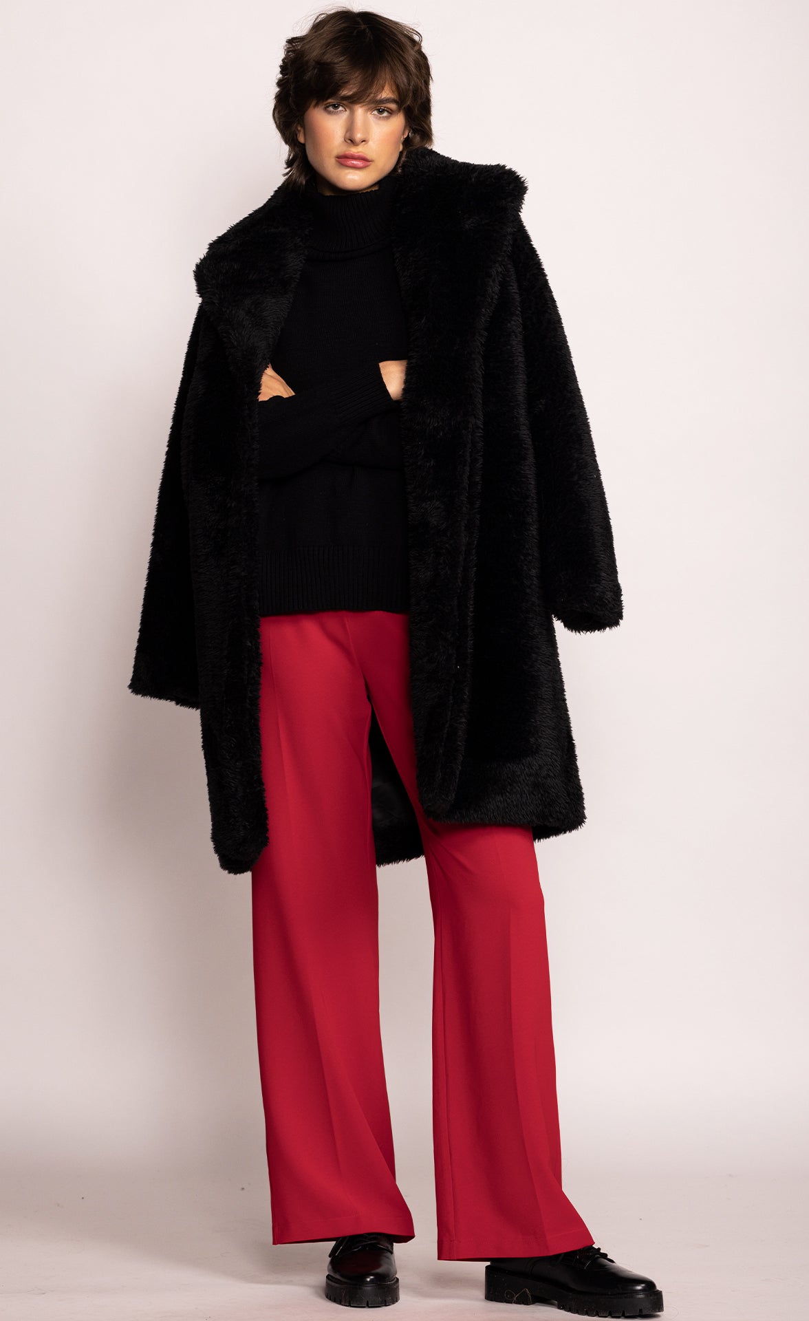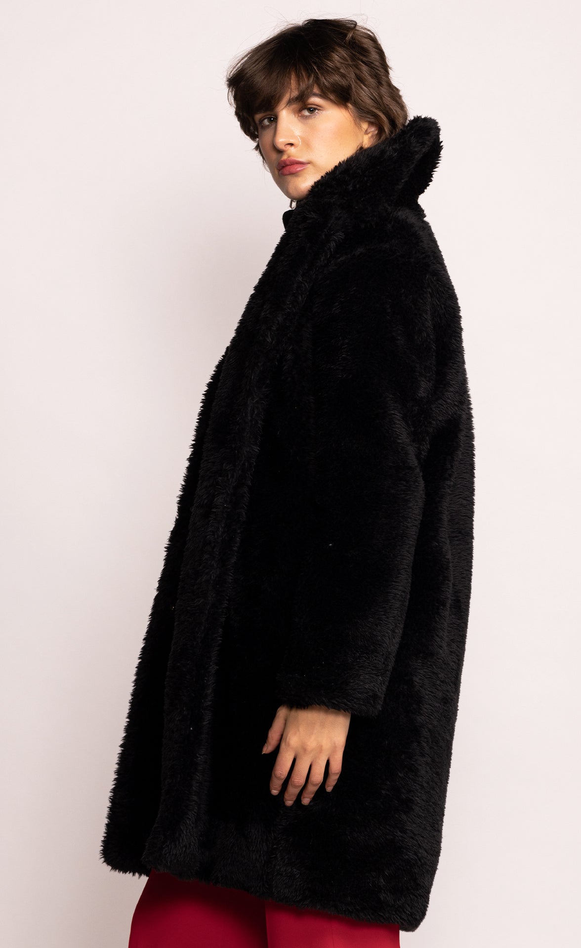 Fluffy and warm. The Gina coat will keep you covered all throughout the fall season