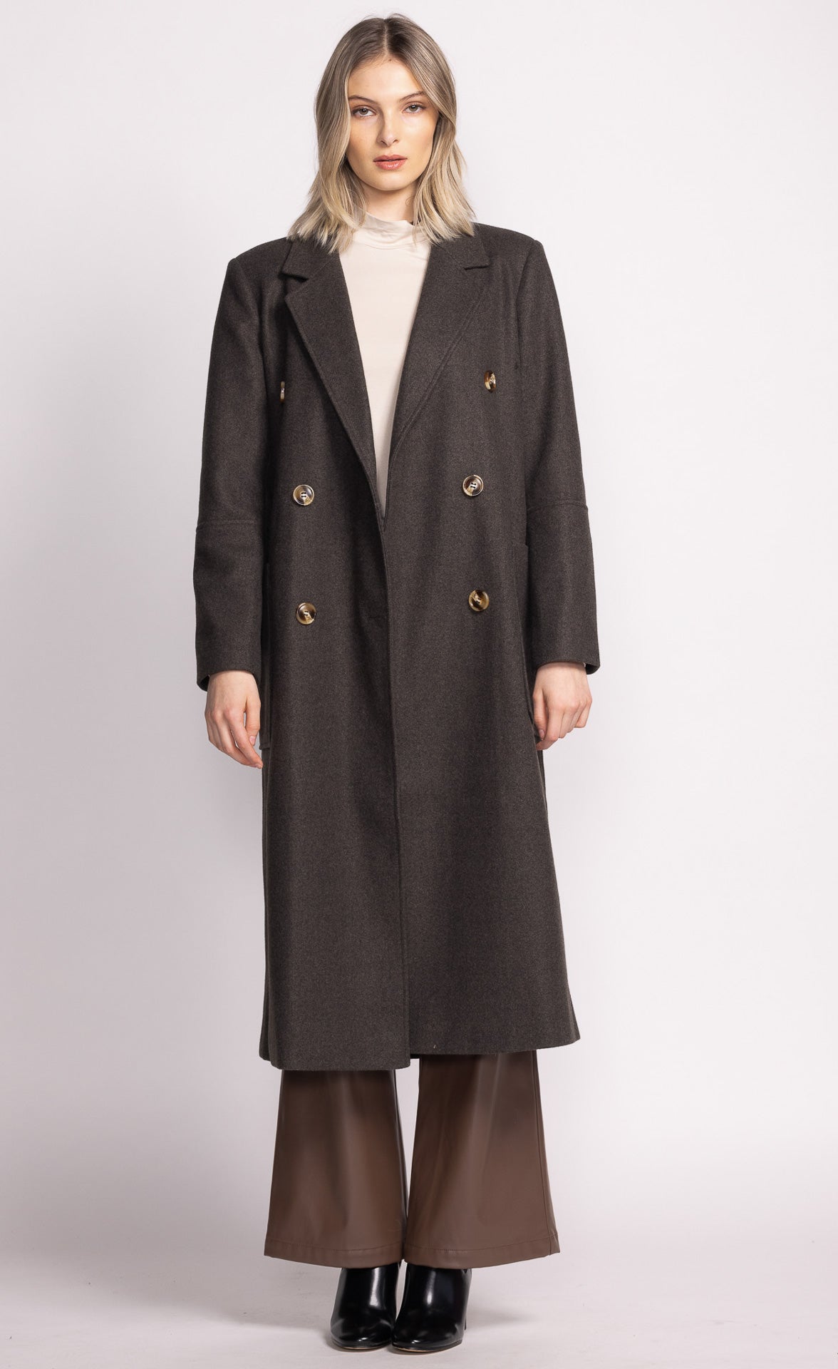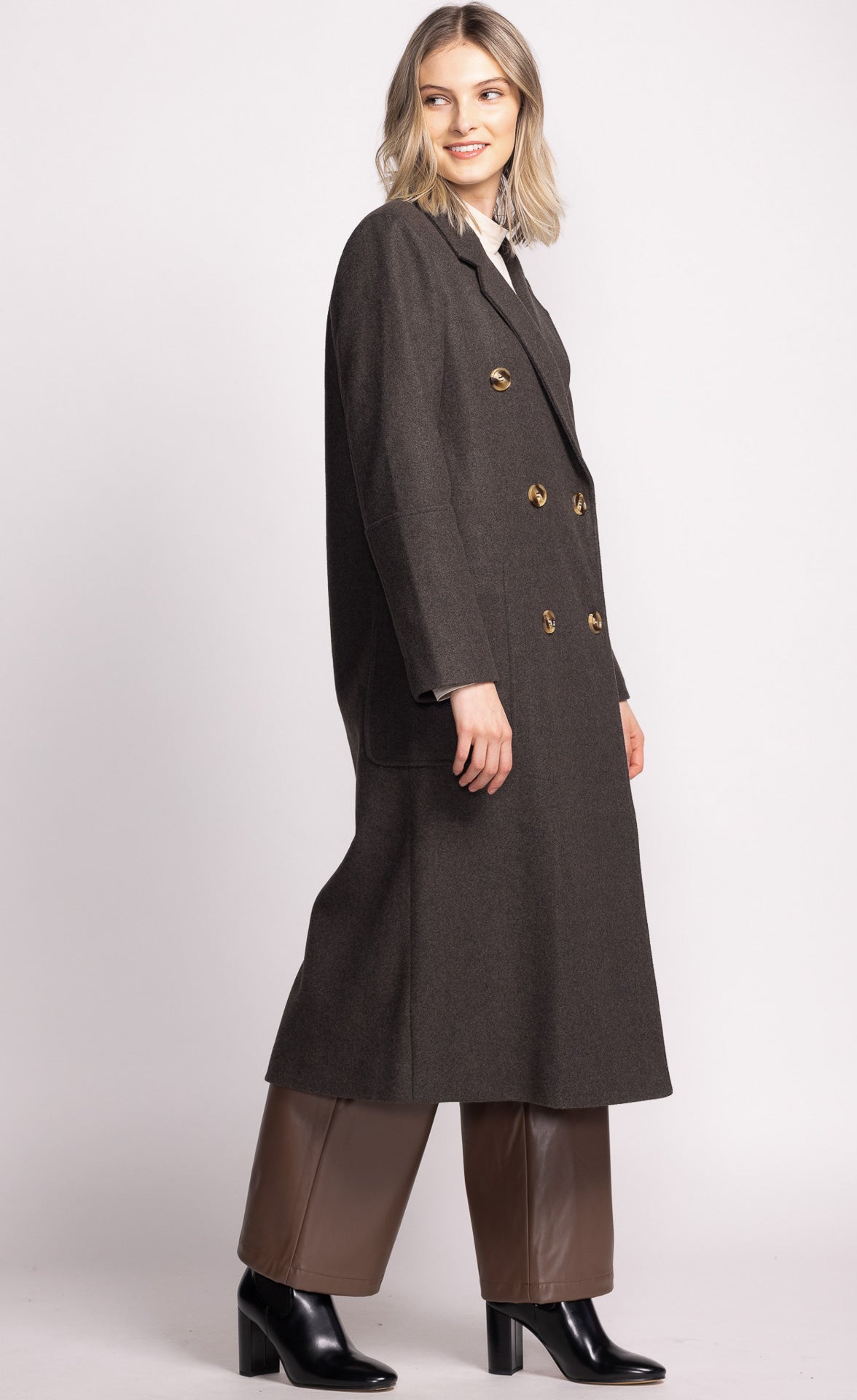 The Lara Jacket is a chic, long jacket with a relaxed fit and front button closure. Perfect for layering over your favorite sweater and jeans for an effortlessly stylish look.