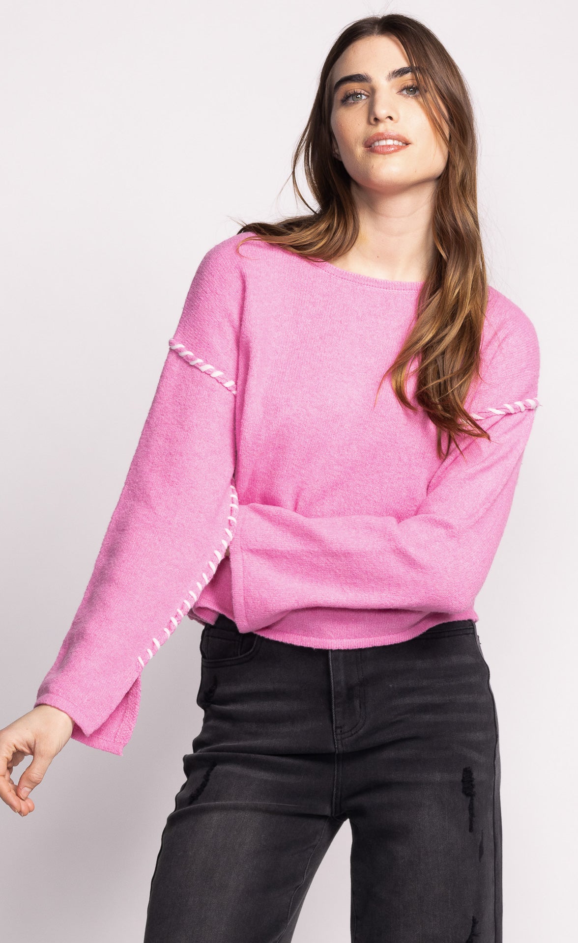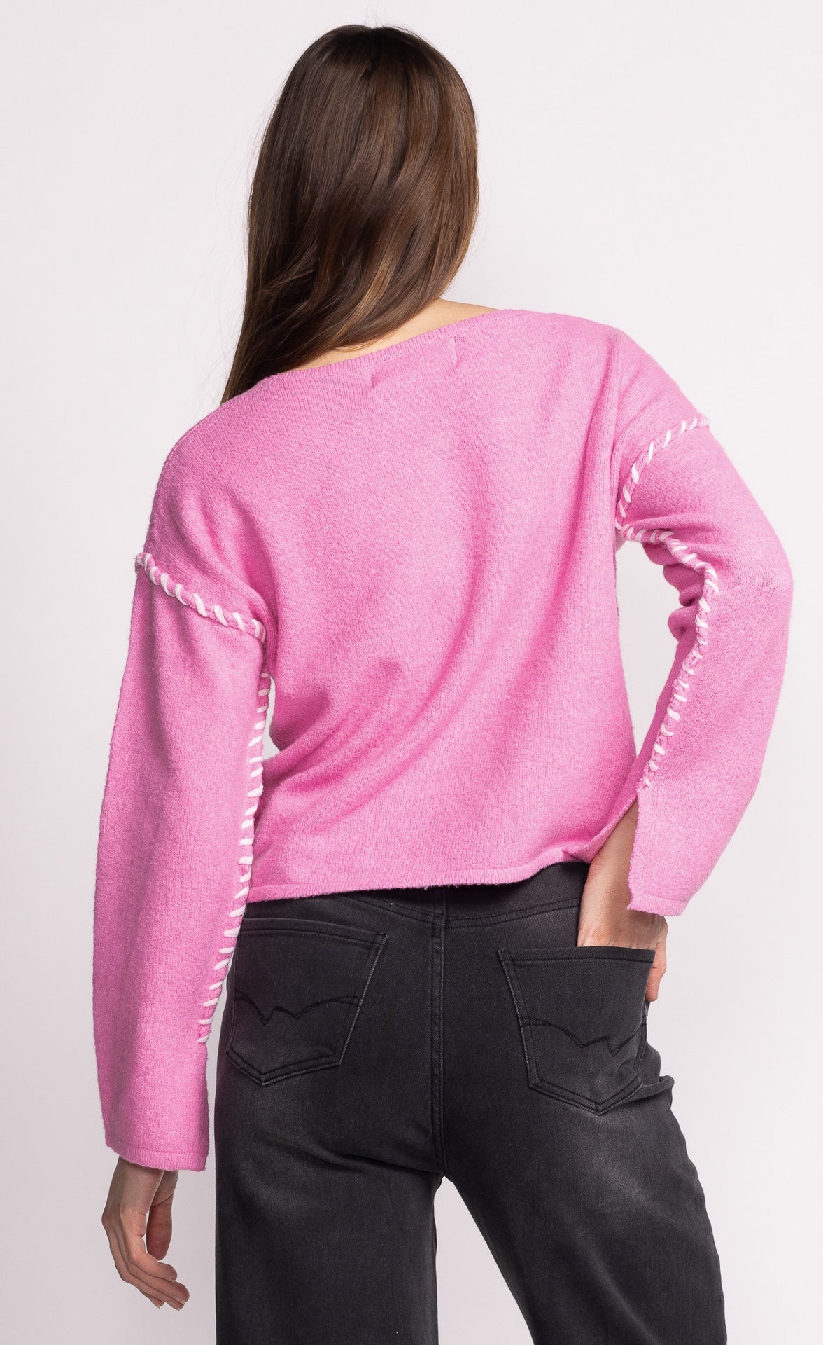The Joelle Sweater boasts exposed contrast stitching on the sleeves and a chic drop-shoulder design, perfect for elevating your casual look. Pair it with dark denim or tailored pants for a laid-back yet stylish ensemble.