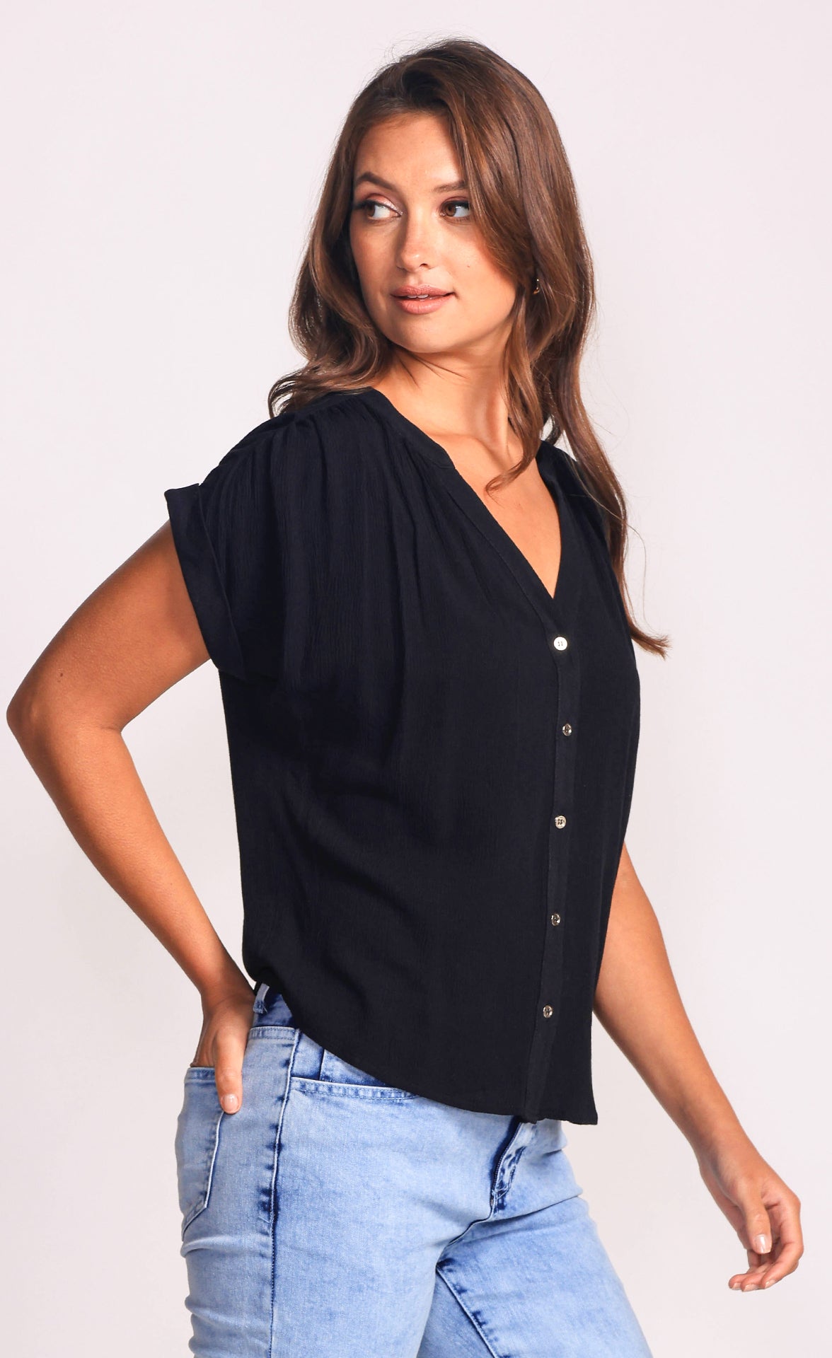 Introducing the Jenna Top, crafted from breathable fabric for all-day comfort. This versatile piece is a wardrobe staple, perfect for effortless styling with anything in your closet.
