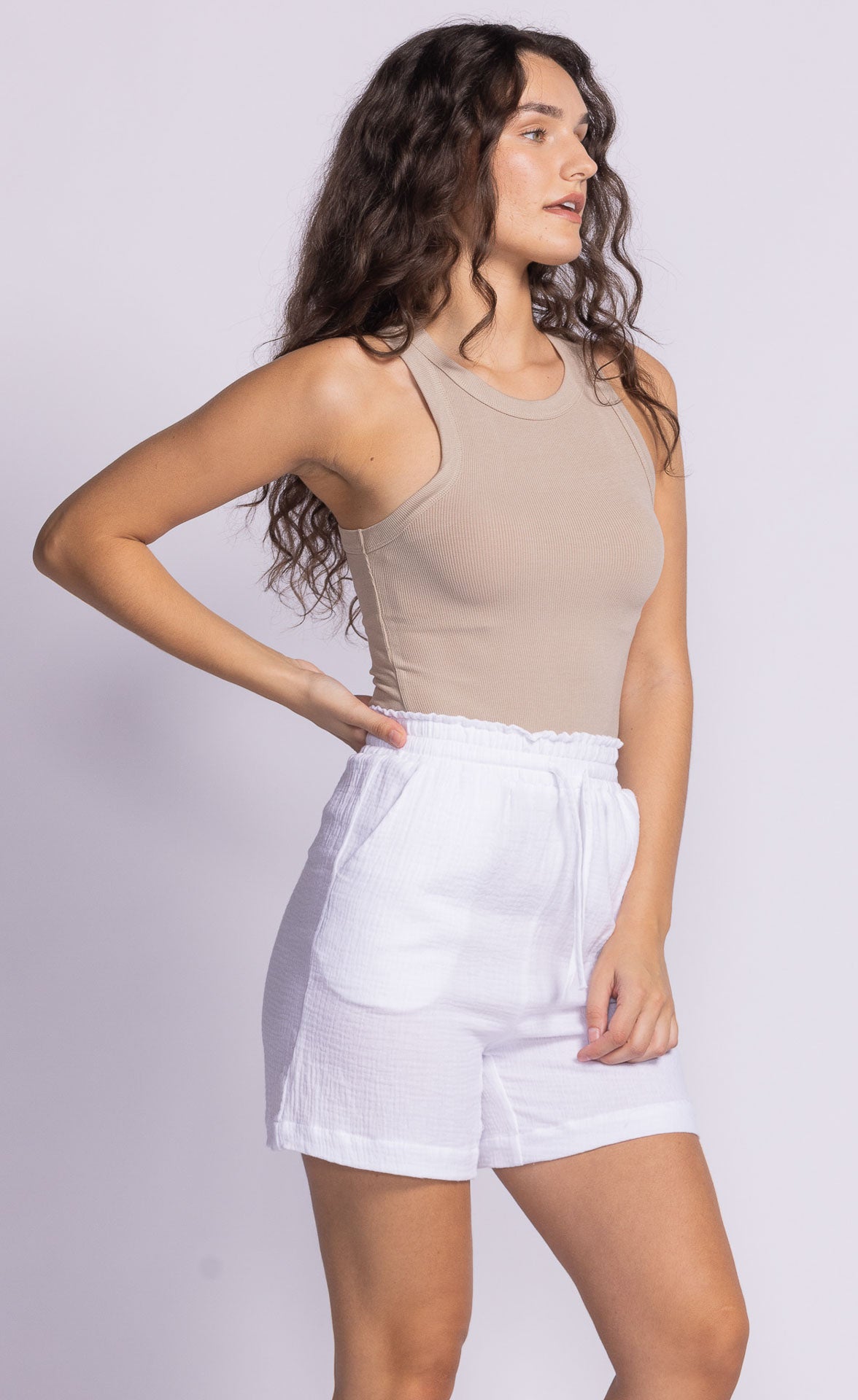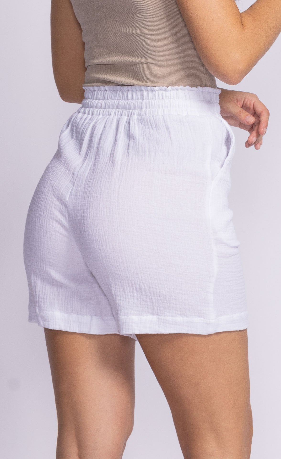 The Nikki Shorts feature an elastic waistband with a cinchable drawcord and a relaxed fit. Perfectly paired with the Nikki Top, they're ready to take you on your next beach trip!
