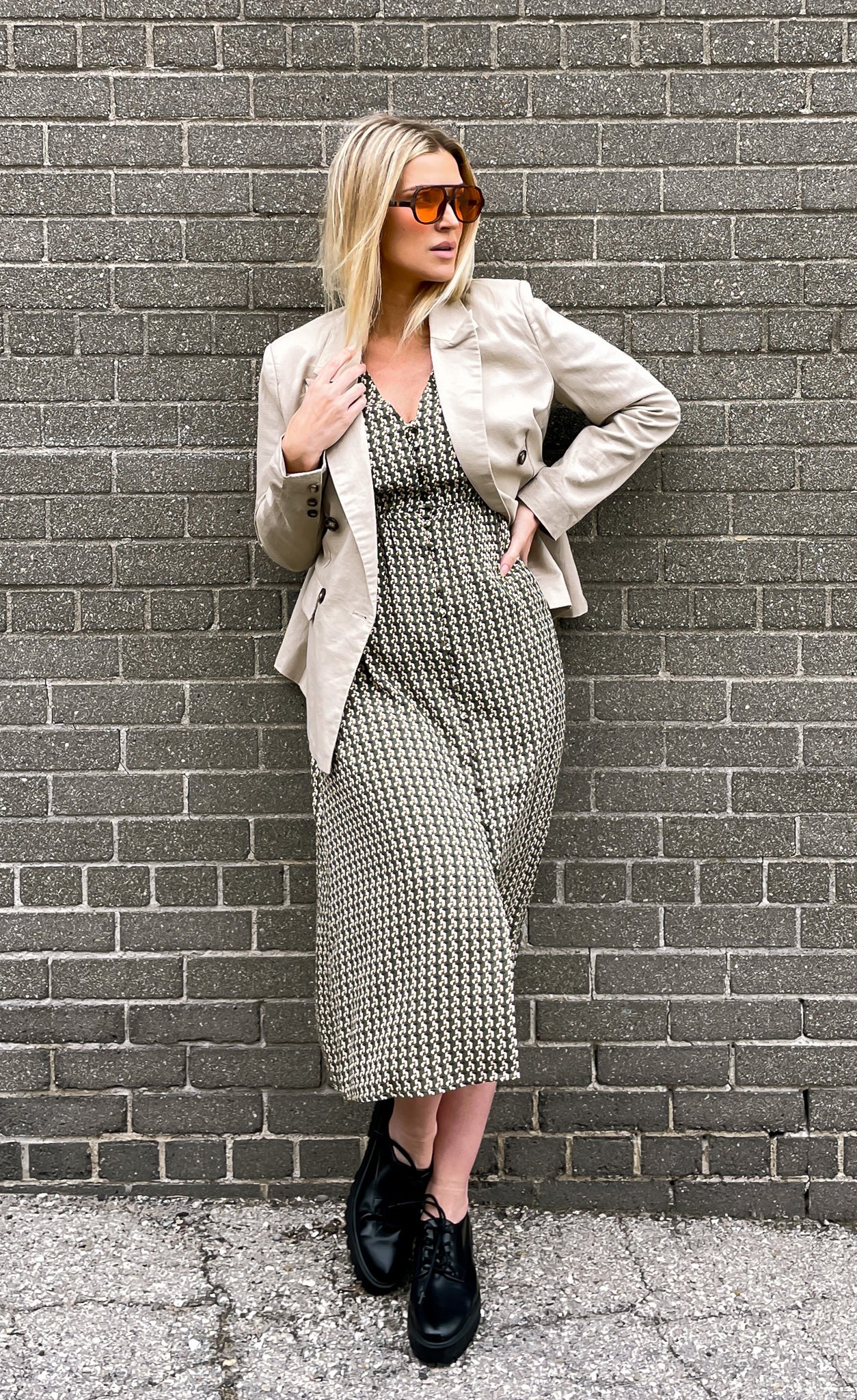 Effortlessly stylish, the Trinity Dress is easy to throw on with its front button loop closure. Whether you're heading out or enjoying cottage days, it's the best choice for a relaxed yet chic look.