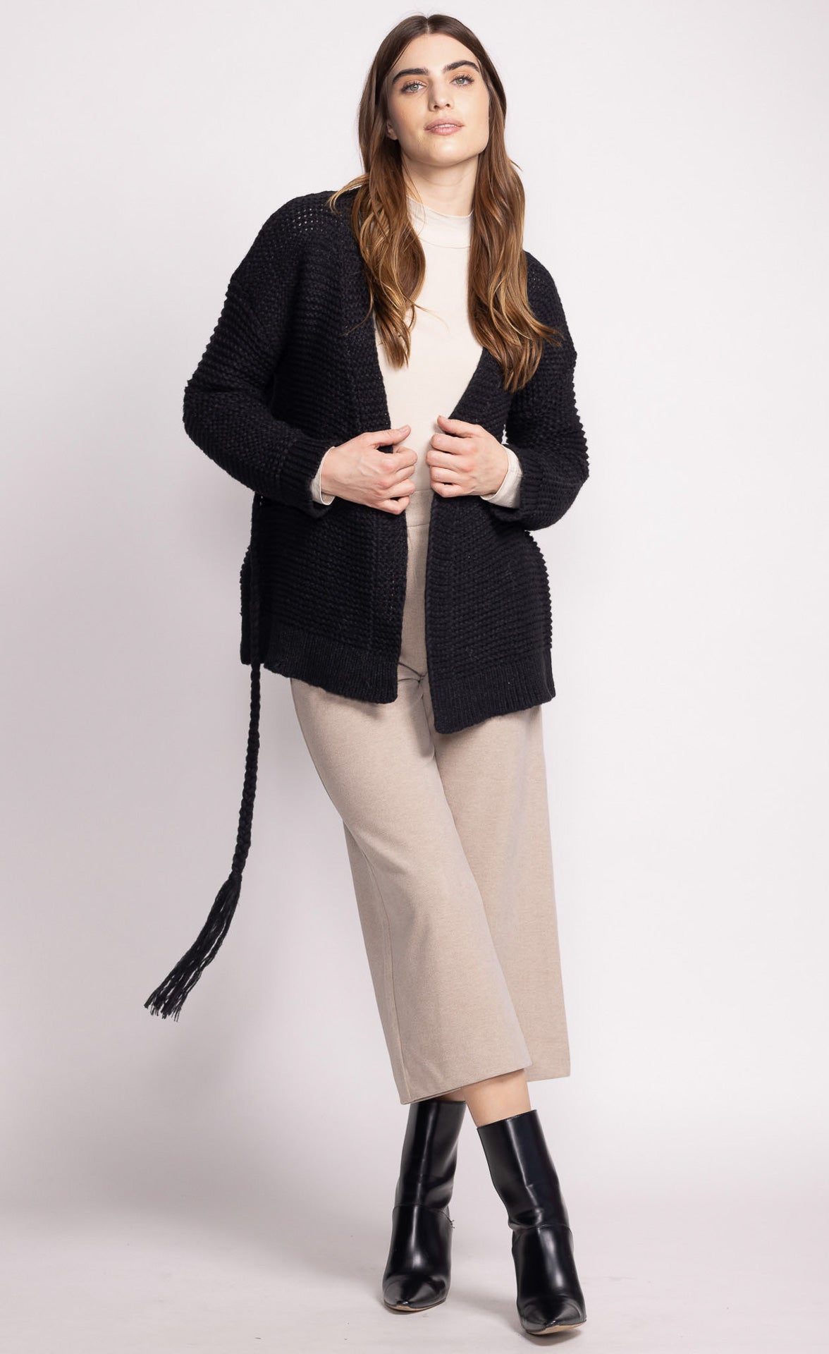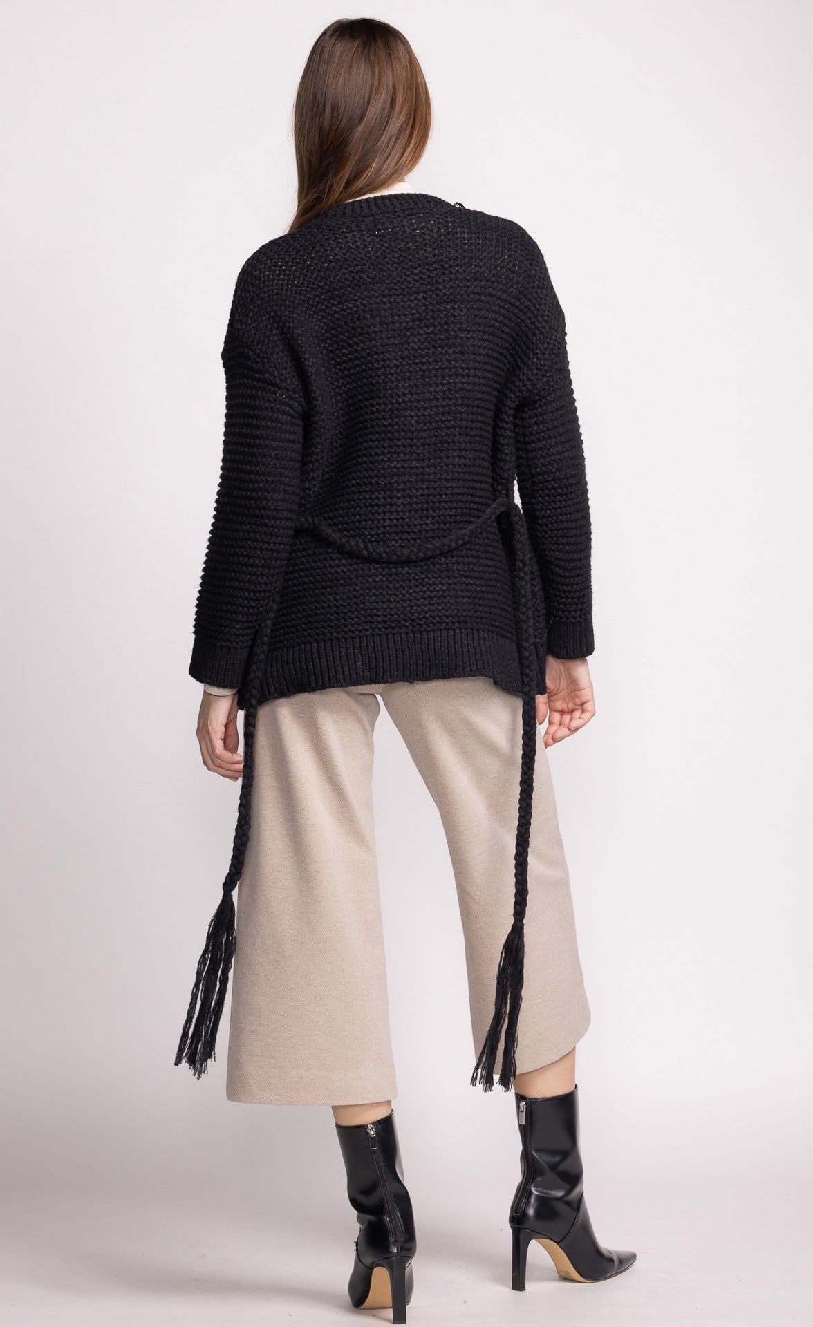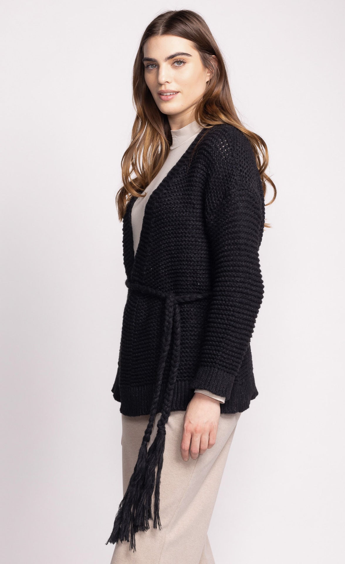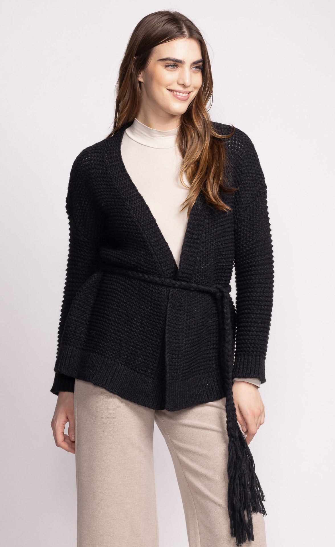The Wren Sweater is perfect for layering, featuring a cozy design and a braided belt front tie closure for added flair. It’s both stylish and snug for any occasion.