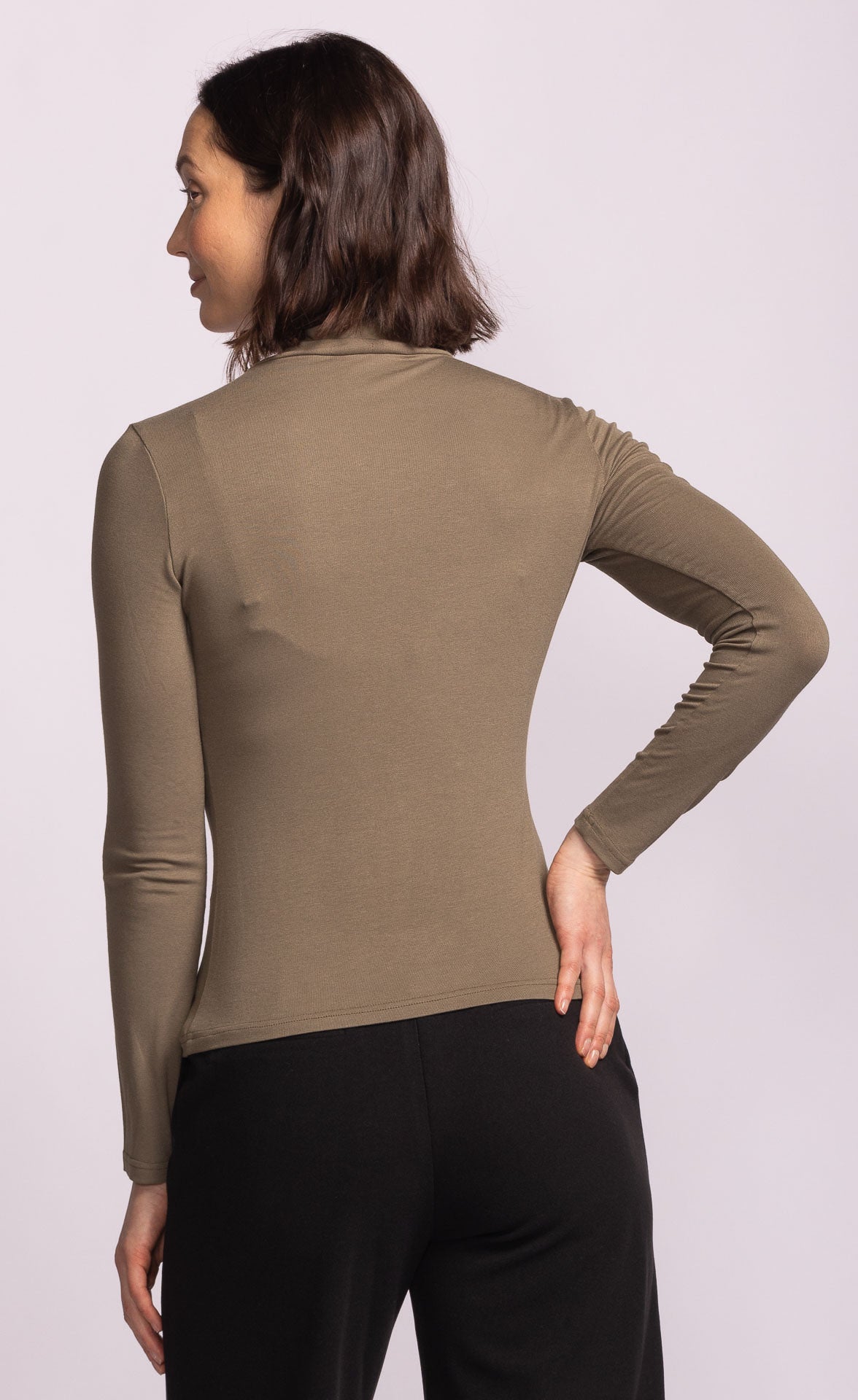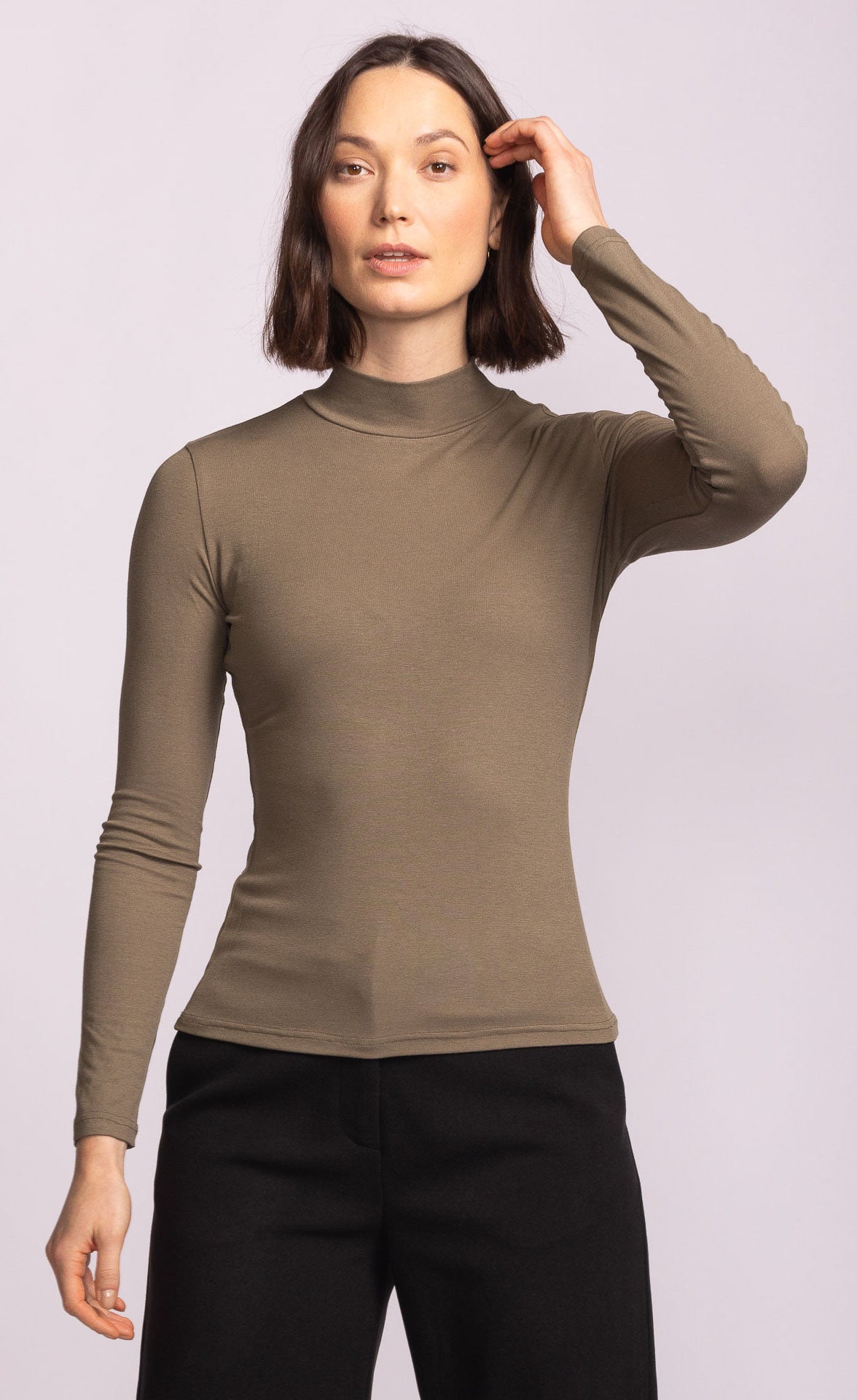 The Vienna Top is a long-sleeve top made from a super-soft viscose blend, perfect as a layering essential for cooler weather or wearing on its own. Designed with a mock neck and stretch-to-fit silhouette, it's a versatile staple for everyday wear. Style it under a vest or a coat.