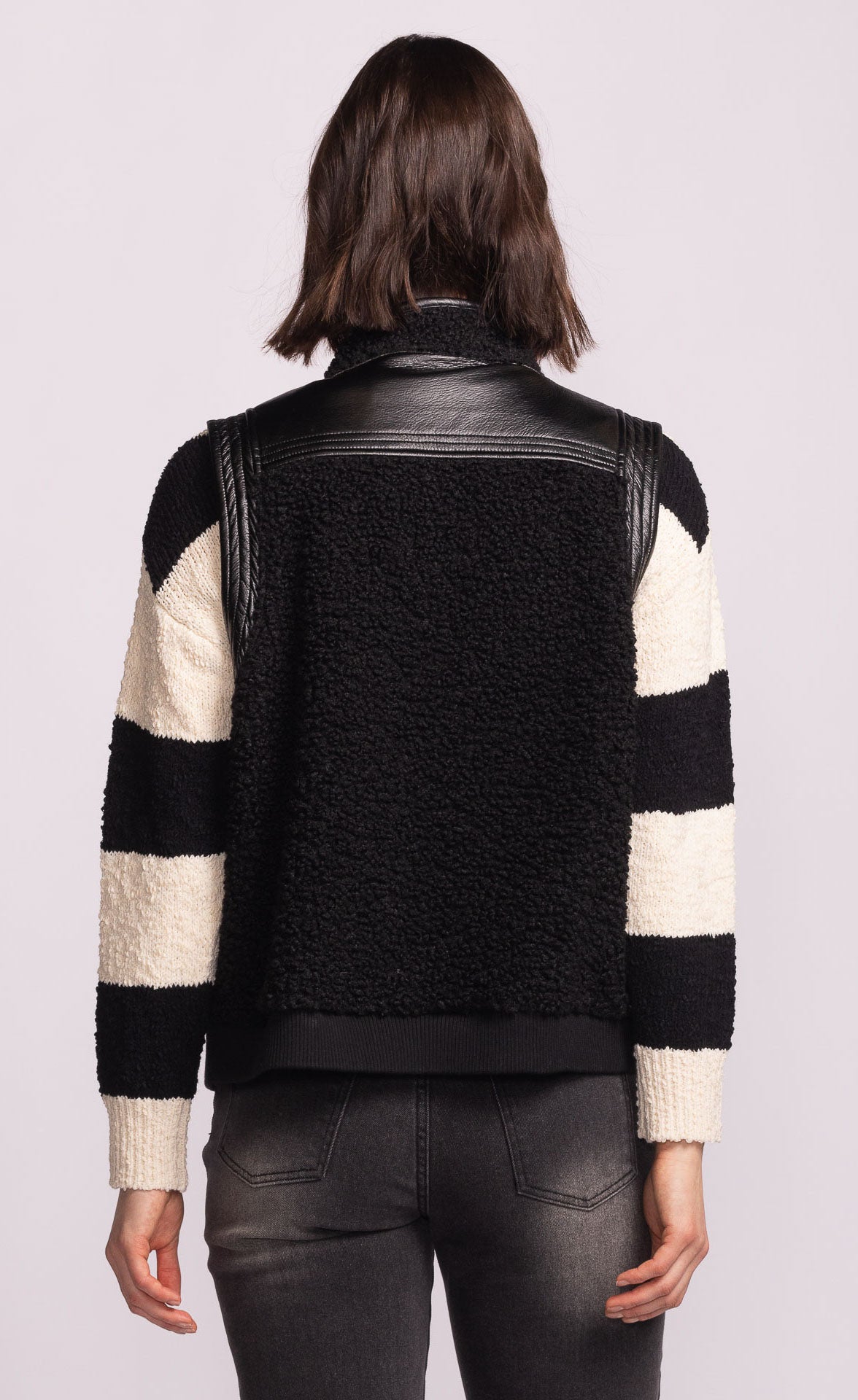 The Vincino Vest is a fleece vest accented with leather trims and tonal hardware, designed for the perfect balance of edge and comfort. Ideal for layering during chilly weather transitions, pair it over a fitted long-sleeve top and jeans for a casual look or over a dress for a stylish night out.