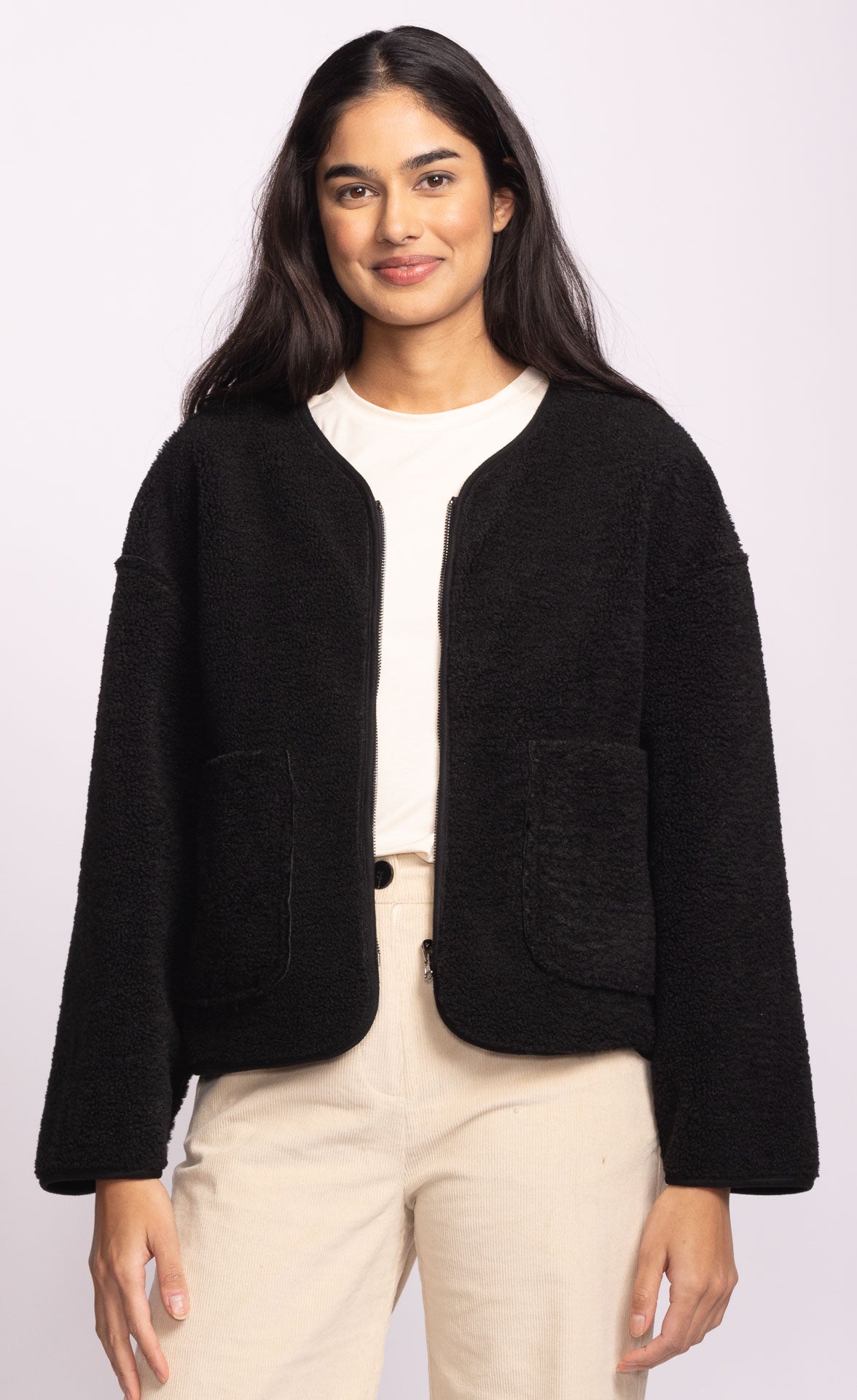 The Wynola Jacket is a zip-up fleece jacket featuring a boxy silhouette, and a curved hem. This cool-weather staple pairs effortlessly with any outfit, perfect for throwing-on when you're on the go. Style it with a long-sleeve top, tailored trousers and a pair of heeled boots for a chic, sophisticated look!