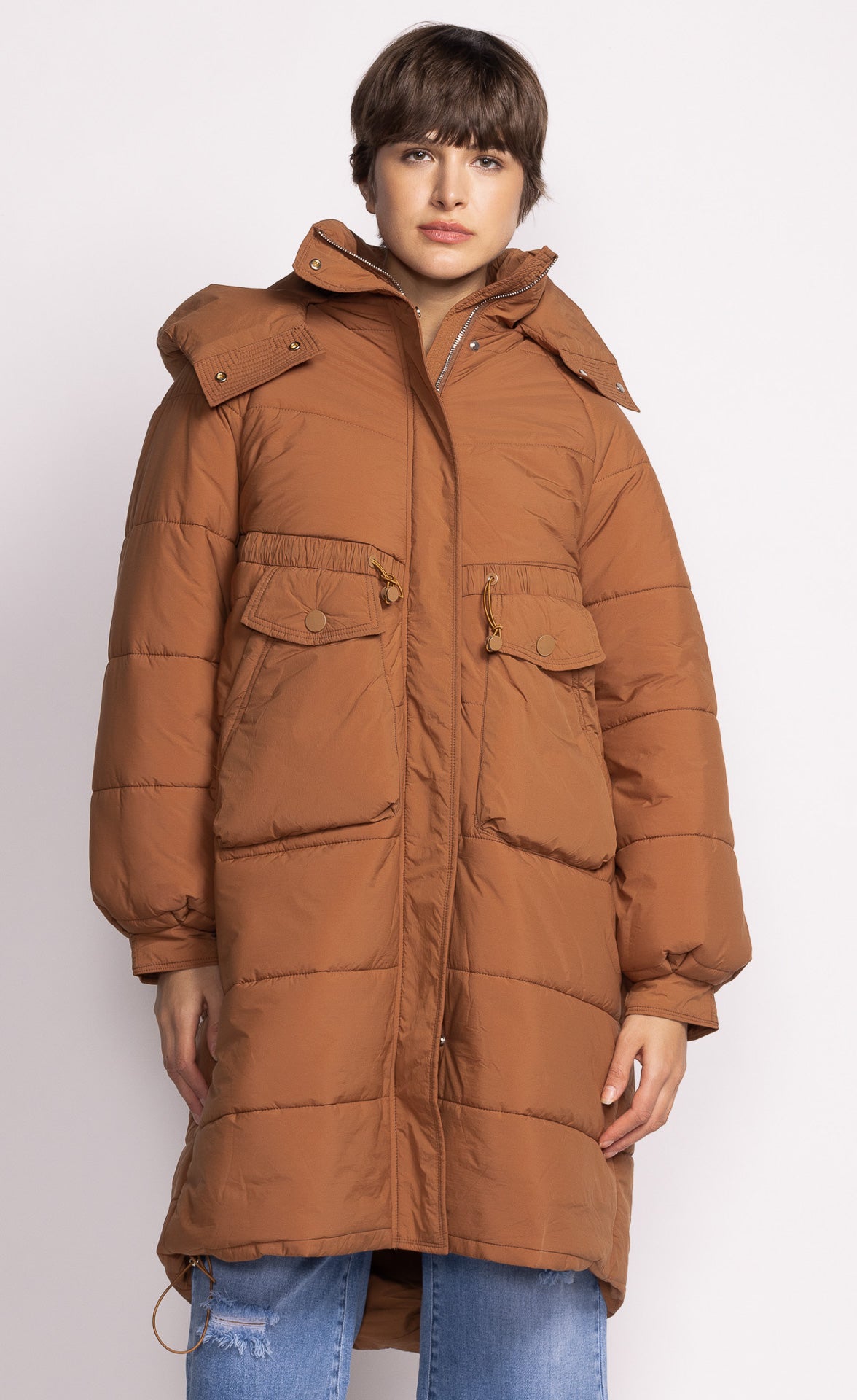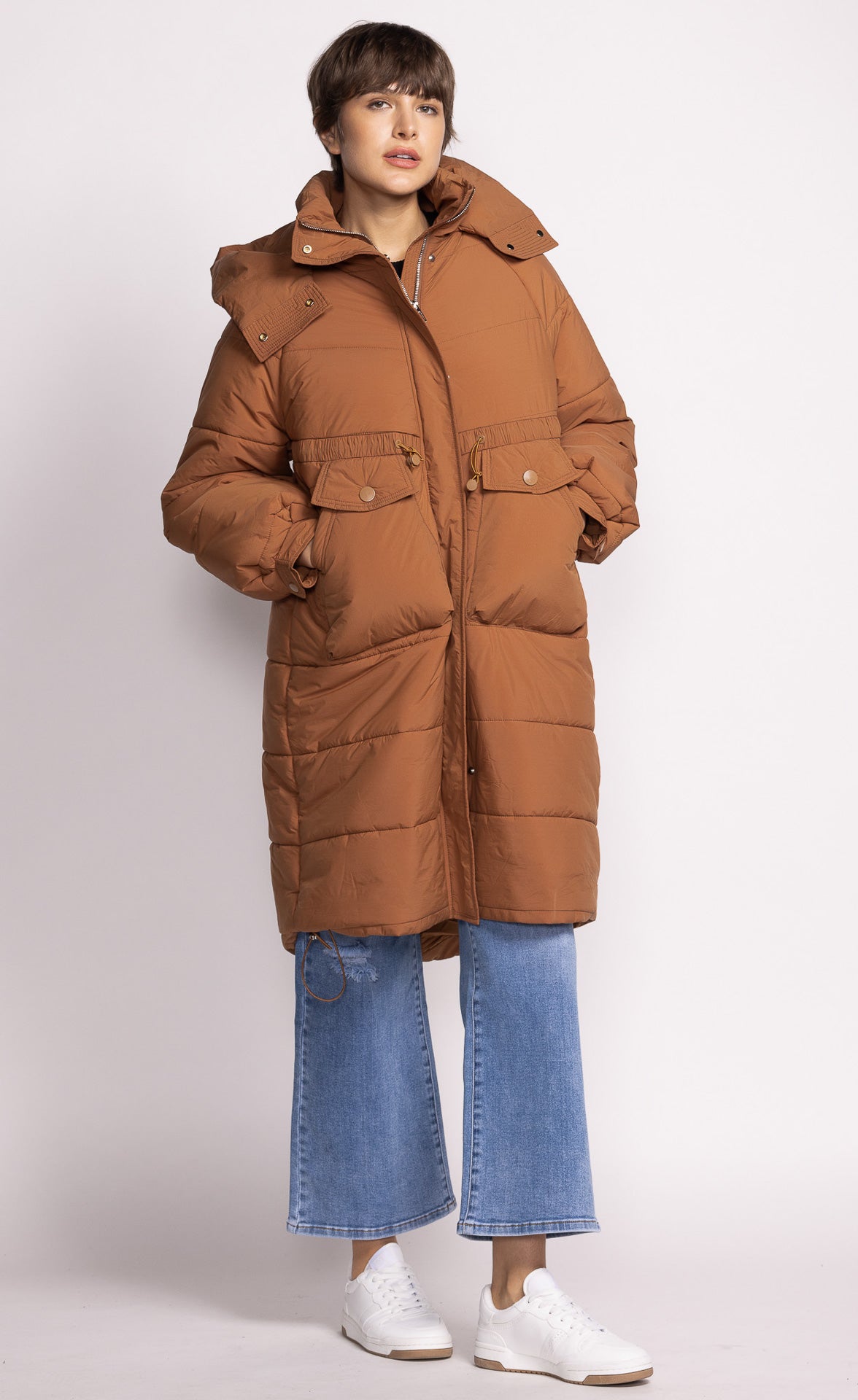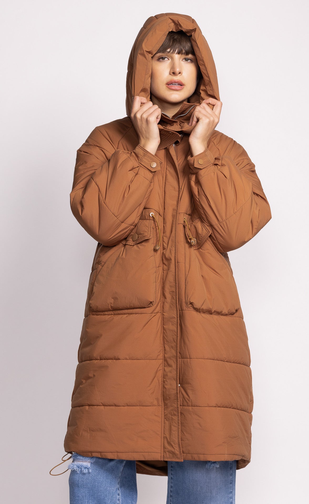 The Tanya Jacket is the ultimate puffer, perfect for keeping cozy in chilly weather. This long, hooded jacket features a drawstring waist and hem for a custom fit, offering both style and warmth in a laid-back, effortlessly cool look.